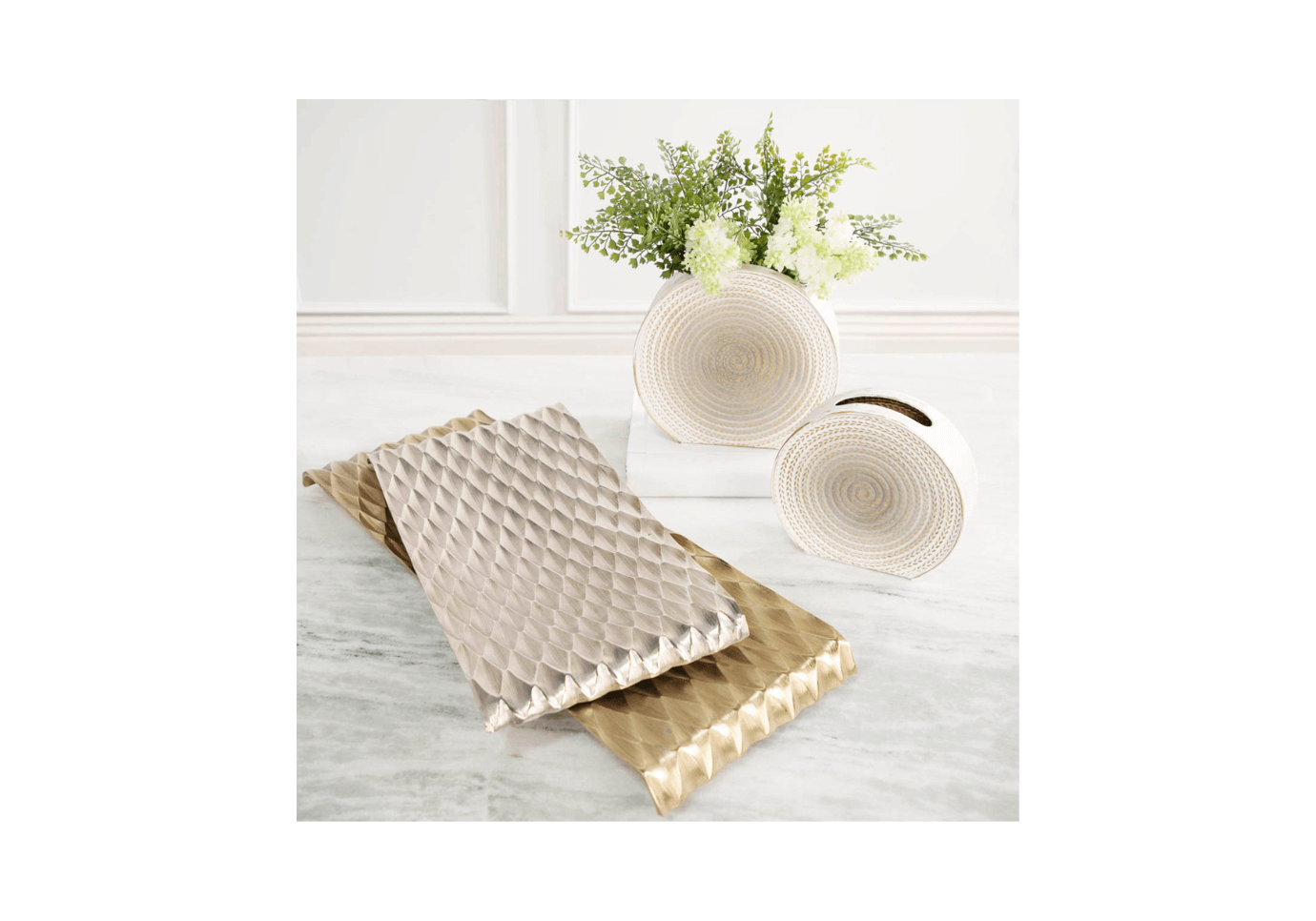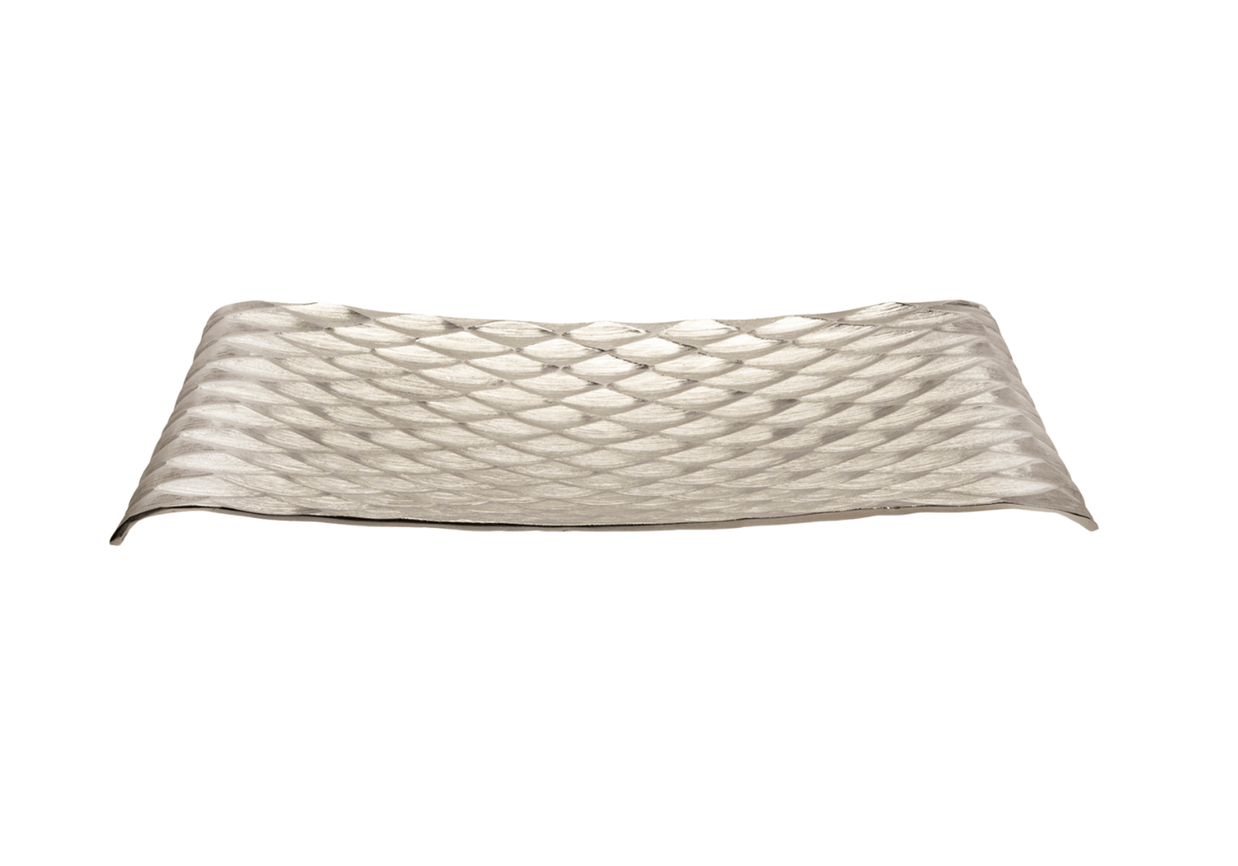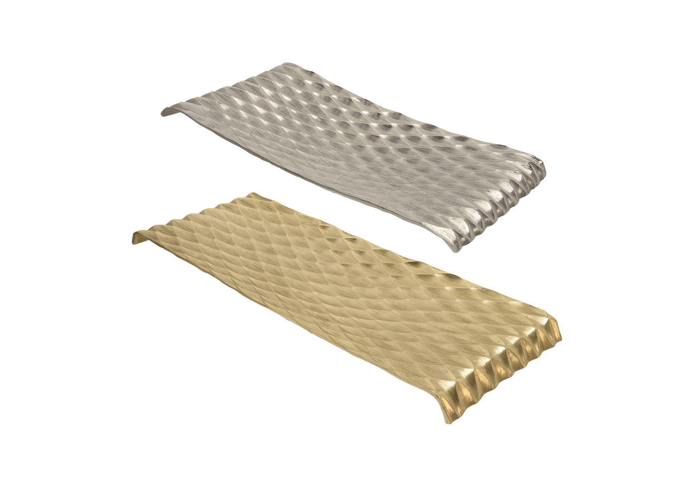 Bandeja Rectangular de Metal Plateado y Dorado Rombos en Relieve