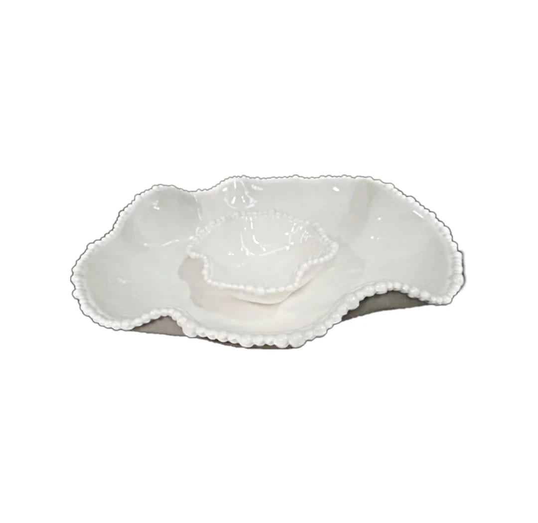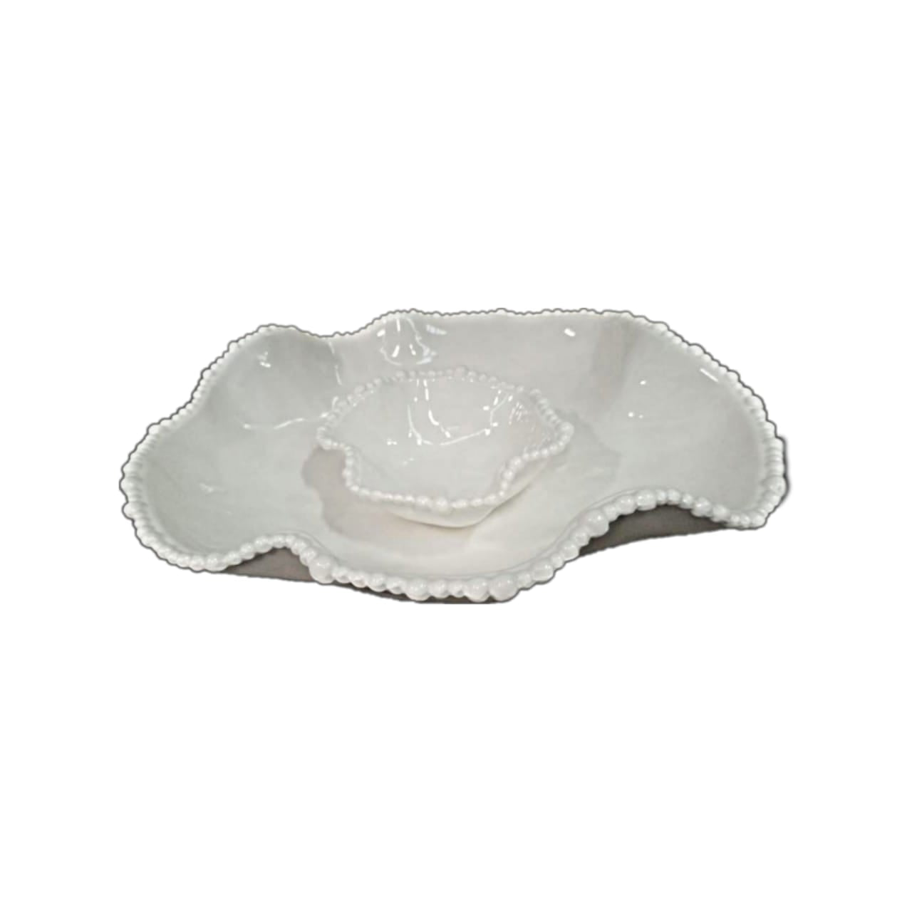 Botanero con dip en melamina blanca, orilla perlitas S/2