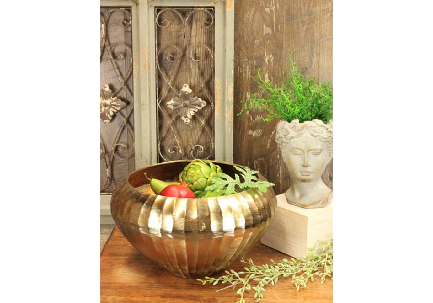 Bowl Redondo Metal Dorado Acanalado Dorado