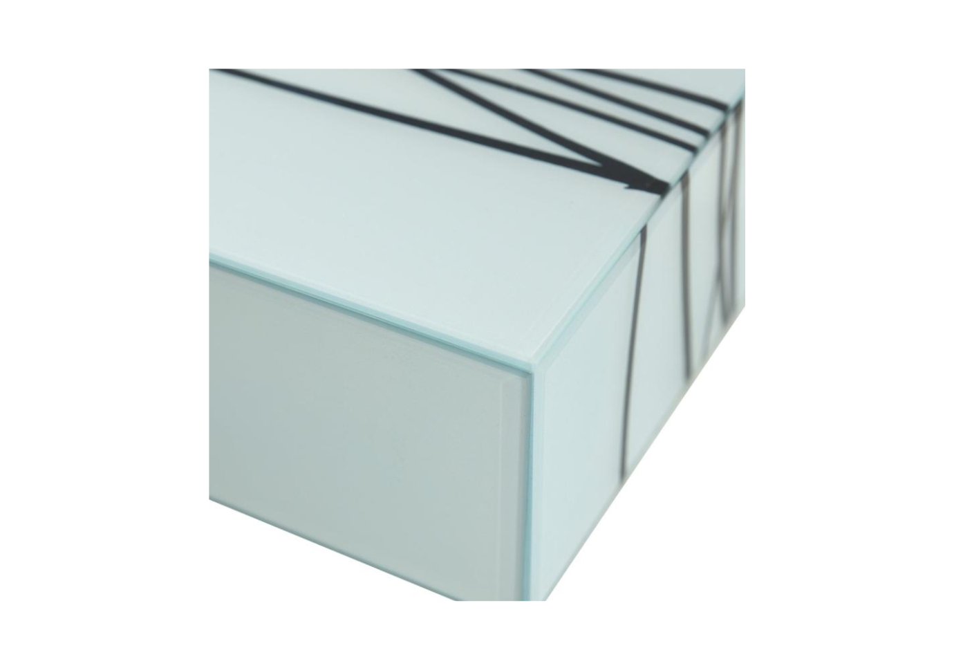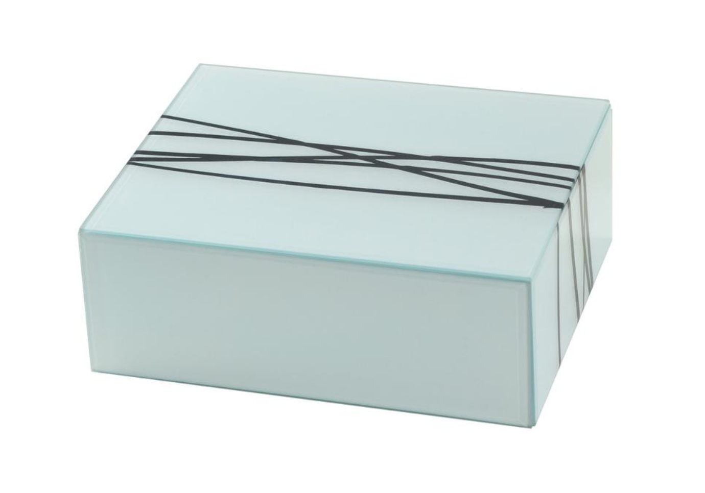 Caja Rectangular de Vidrio Celeste con Detalle de Líneas Negras
