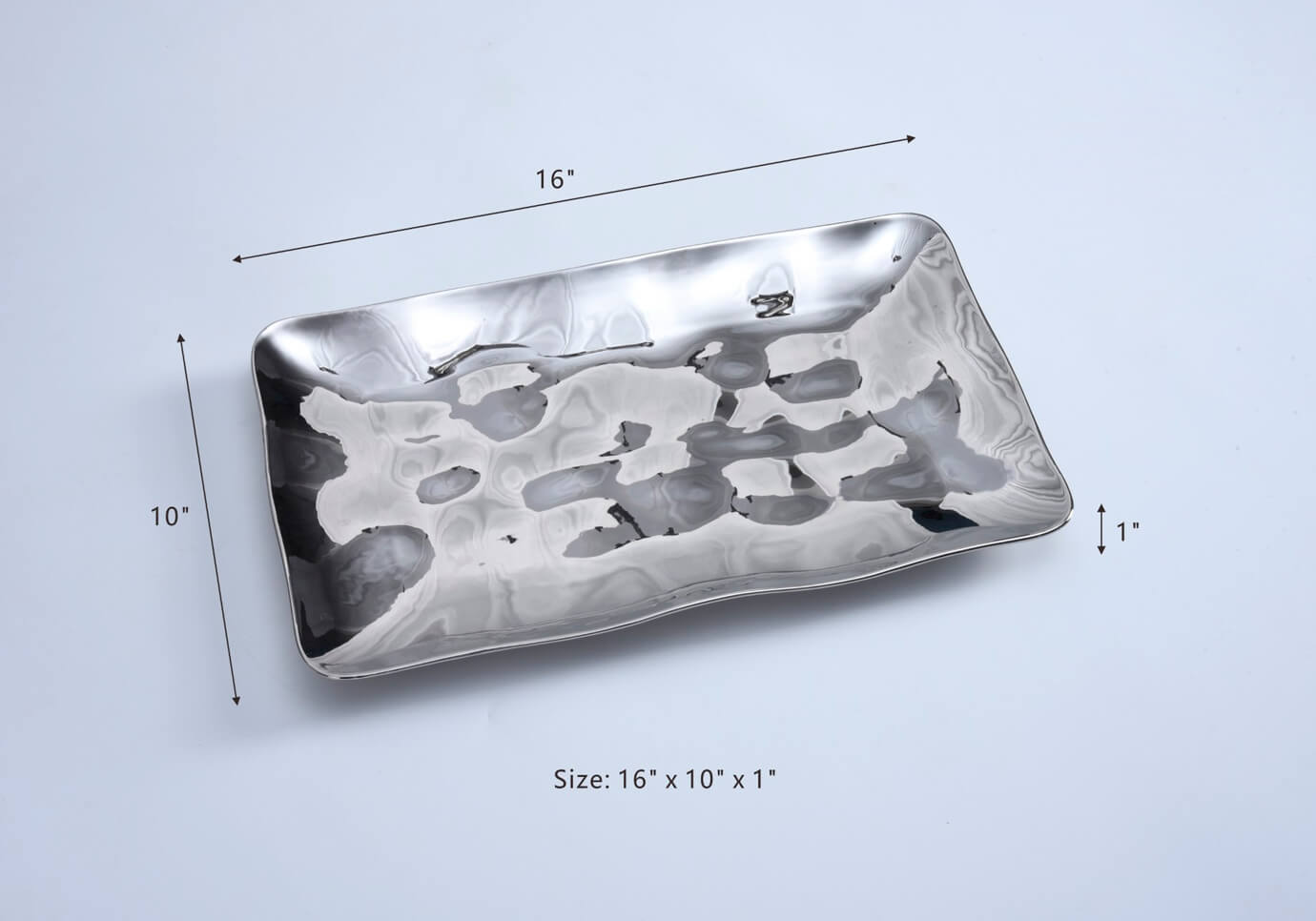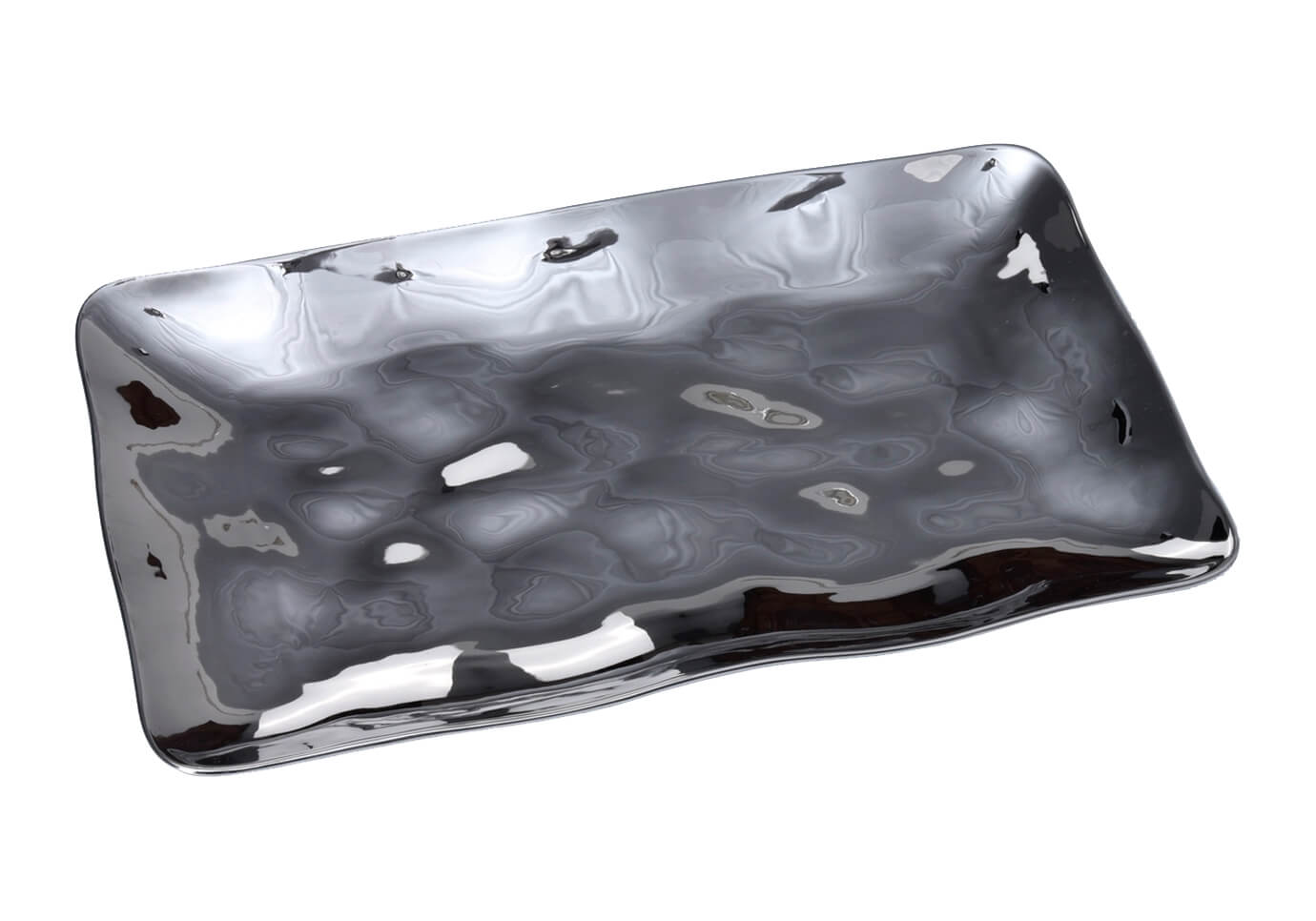 Fabricado en una impresionante porcelana con acabado plateado. Apto para alimentos, apto para lavavajillas, apto para horno hasta 550°. Deslustre y sin manchas. Cuidado fácil.