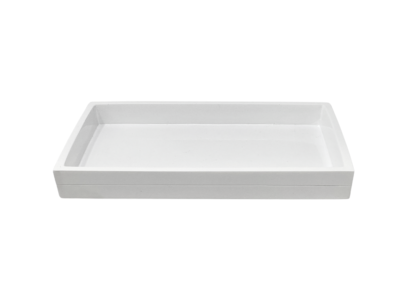 Charola de resina blanca para baño, es dura y resistente por su material, su tamaño la hace muy práctica para ponerla en cualquier espacio.
