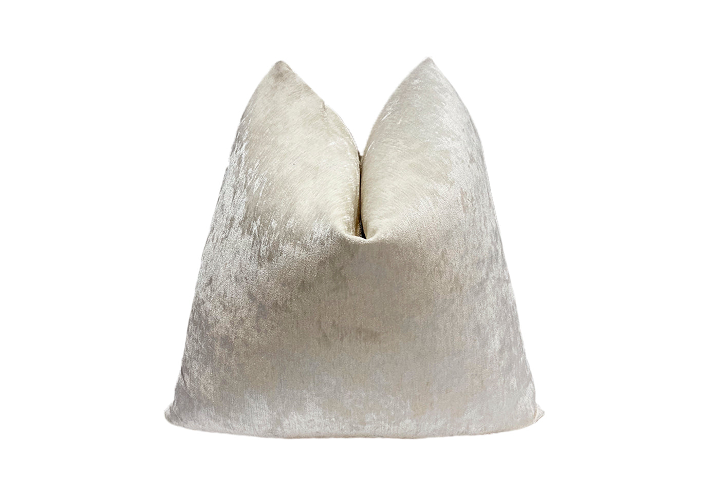 Cojín 100% pluma, funda de tela pelo corto color beige.