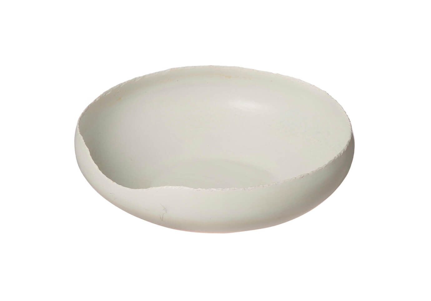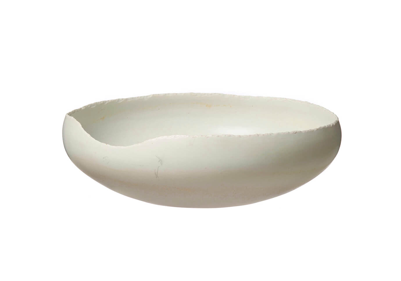 El cuenco de arena blanca está hecho de porcelana y tiene un esmalte blanco reactivo con sutiles rastros suaves de celadón claro. El color recuerda al cristal de mar en una playa de arena blanca. Con un detalle de borde orgánico, este cuenco bajo es perfecto como pieza central o pieza multiusos y combina con muchos estilos de decoración.