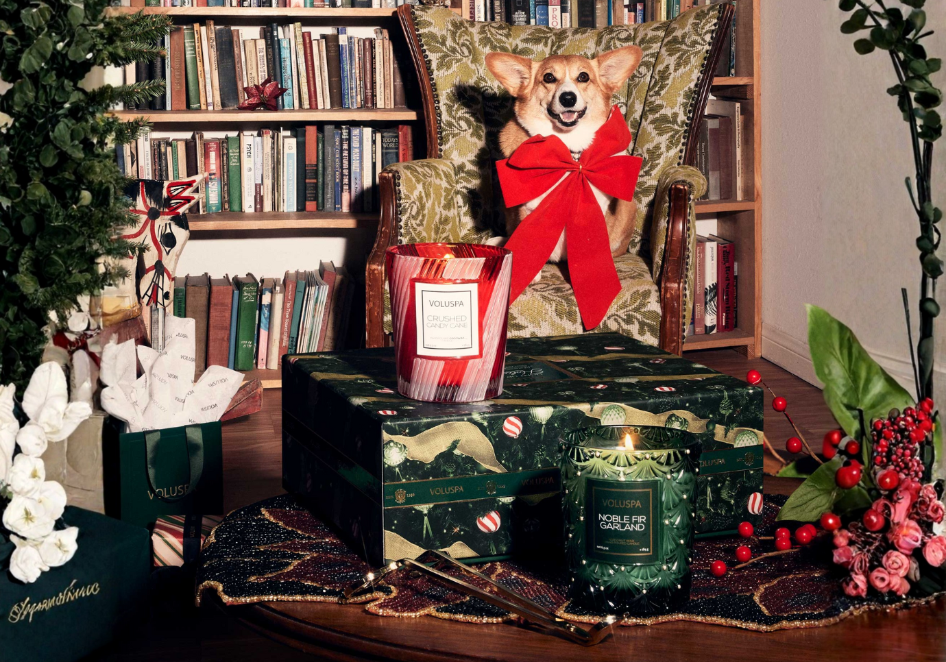Incluye un exclusivo corta-mechas y dos velas clásicas: Crushed Candy Cane y Noble Fir Garland.