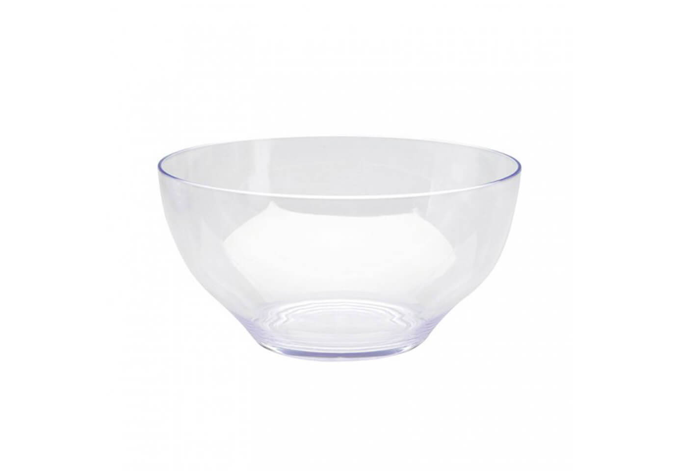 Bowl grande redondo de acrílico transparente, ideal para ensaladas o botanas.