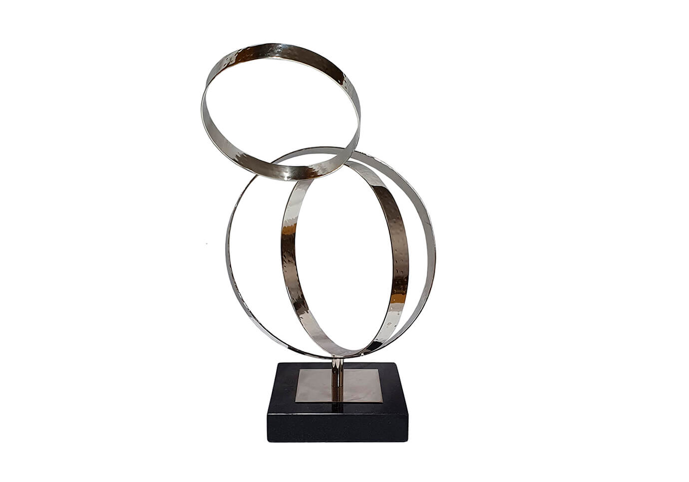 Escultura Anillos Cromo Plateado Base Mármol - Chico