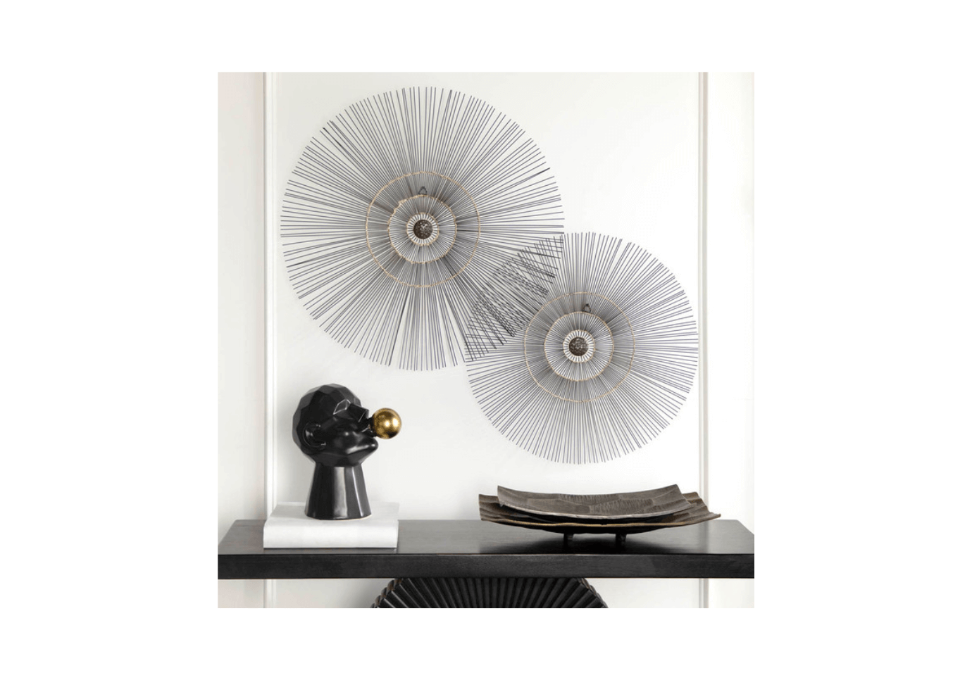 Agrega esta escultura a tu decoración para transformar cualquier ambiente con su diseño audaz y su contraste de colores sofisticados.