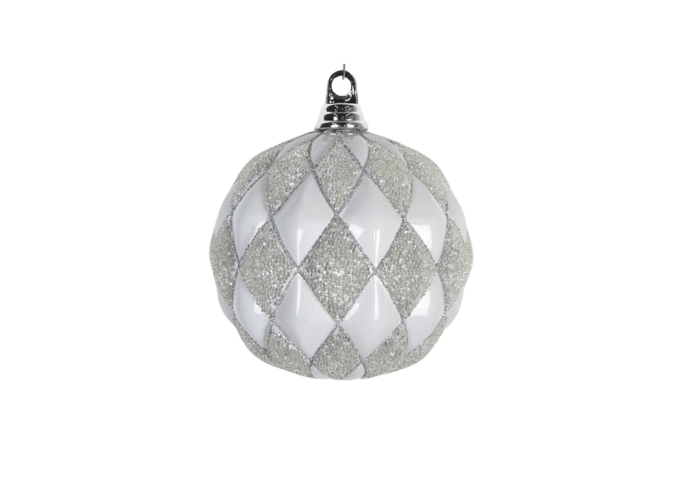 ESFERA ARLEQUIN PLATEADO ESCARCHADO/ BLANCO