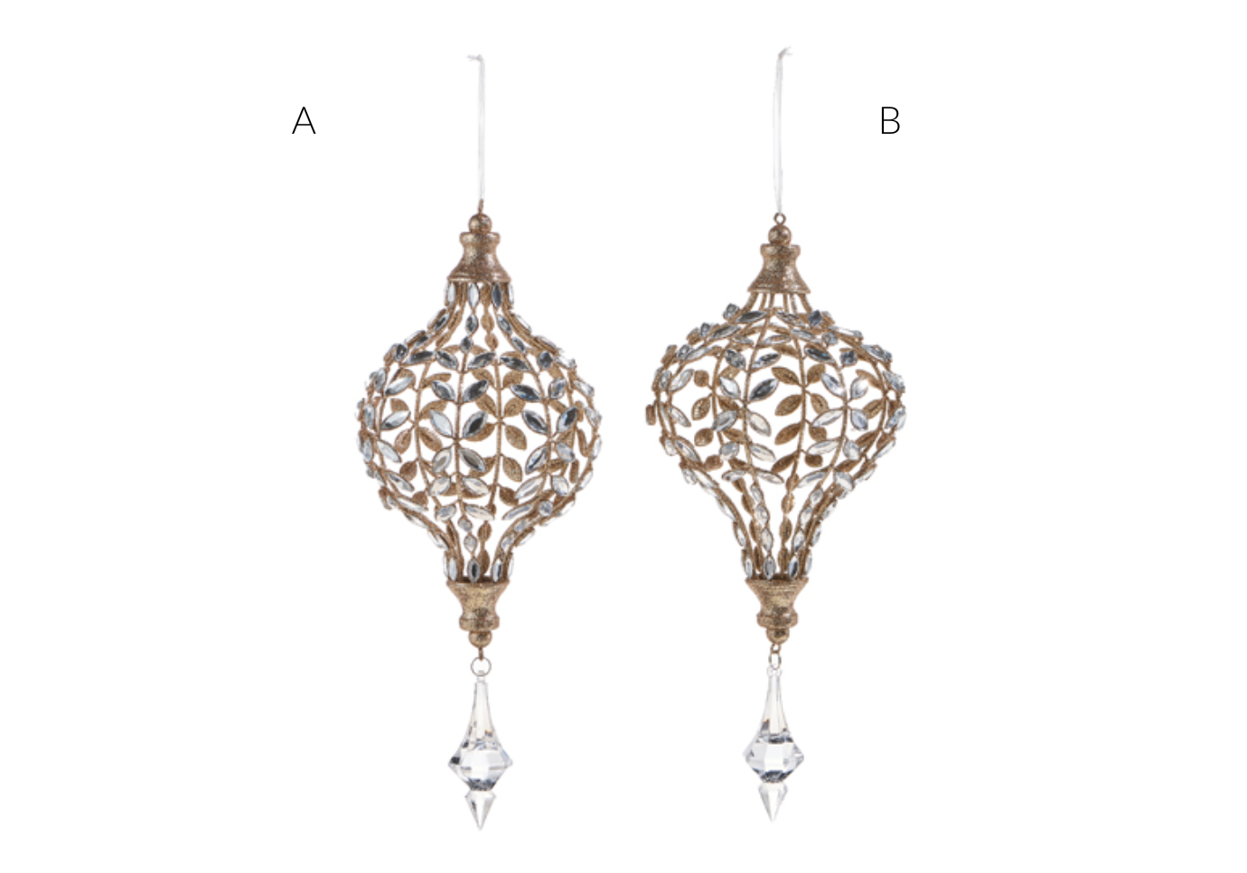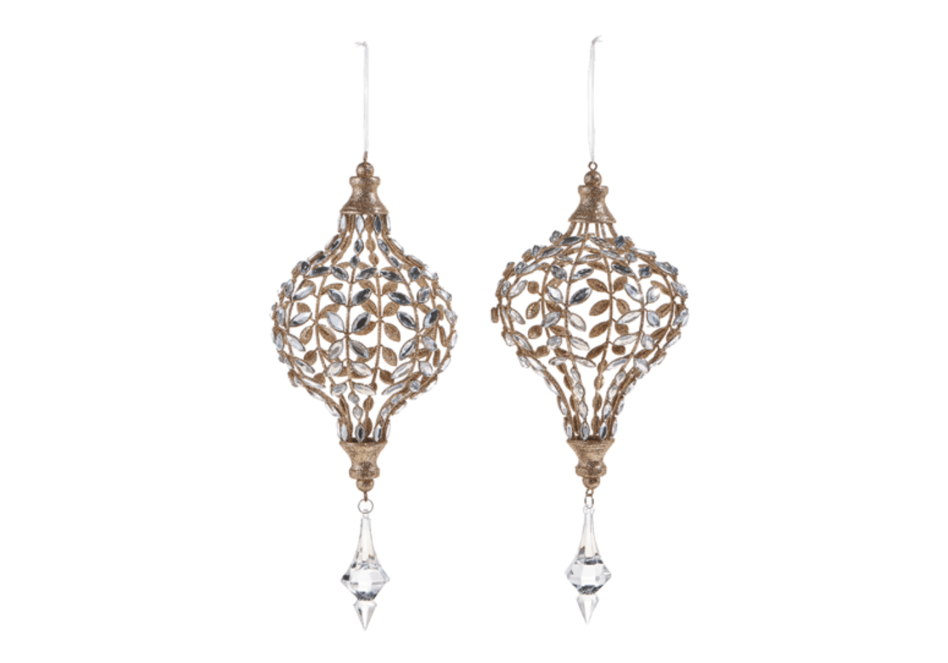 Esfera ahuecada metal champagne cristal y gota colgando.