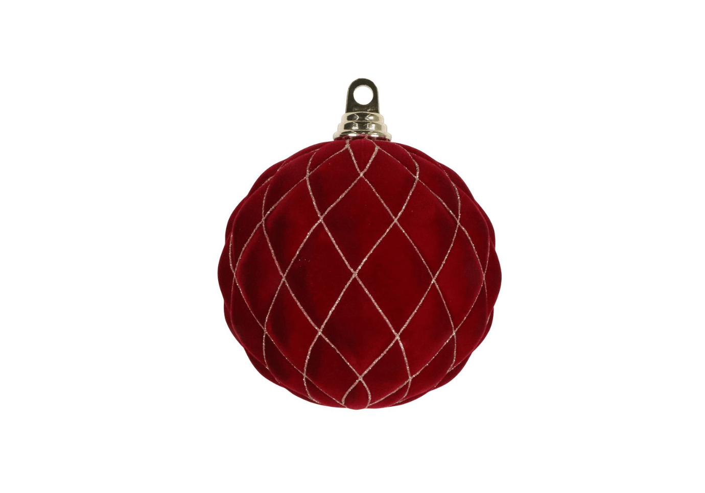 ESFERA TERCIOPELO VINO CON LINEAS EN ROMBOS DORADOS 15 CM