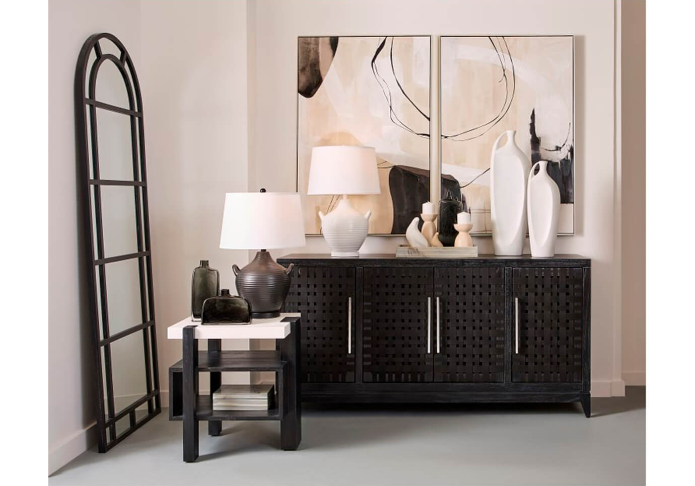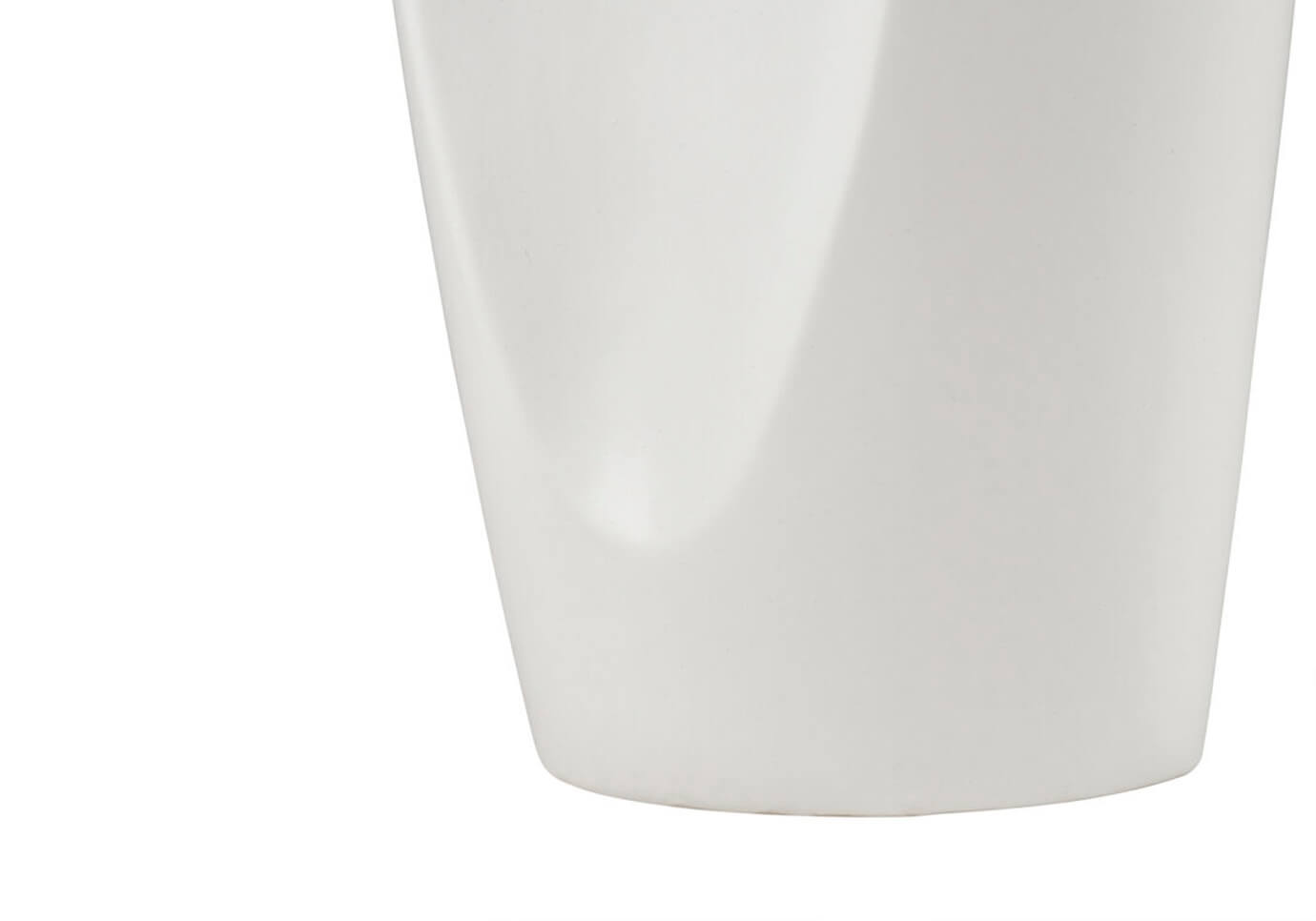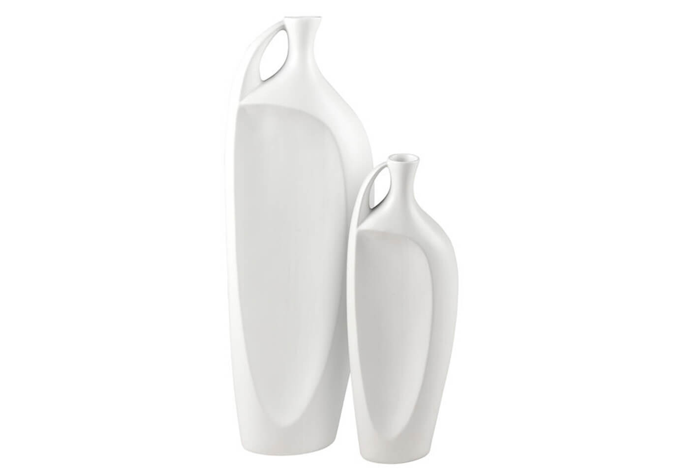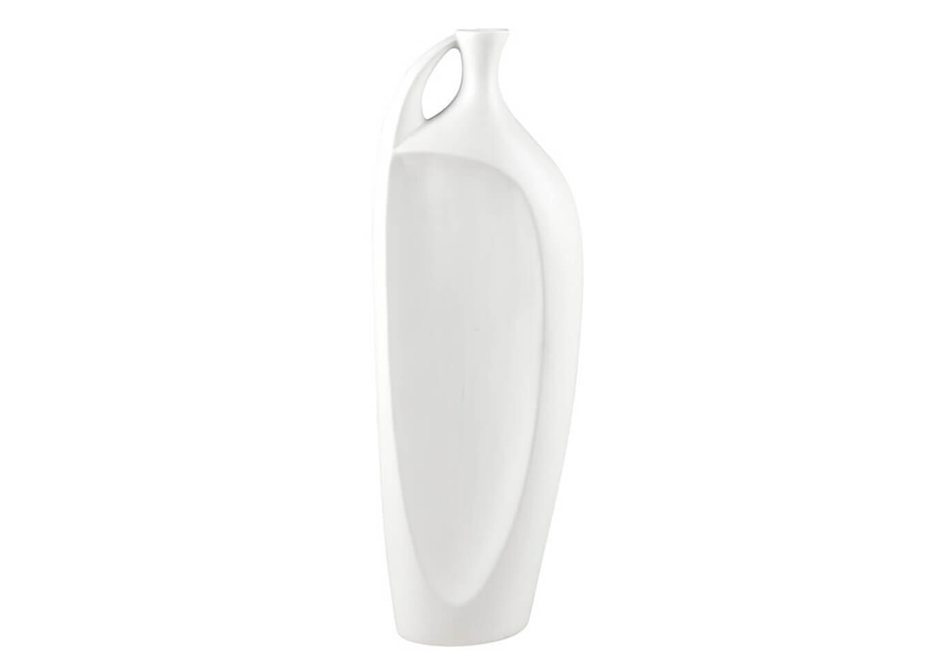 Forma de botella alargada de inspiración griega con un pequeño asa en la abertura y un detalle escultórico en un lateral. Con un acabado blanco satinado, el efecto es femenino y elegante.