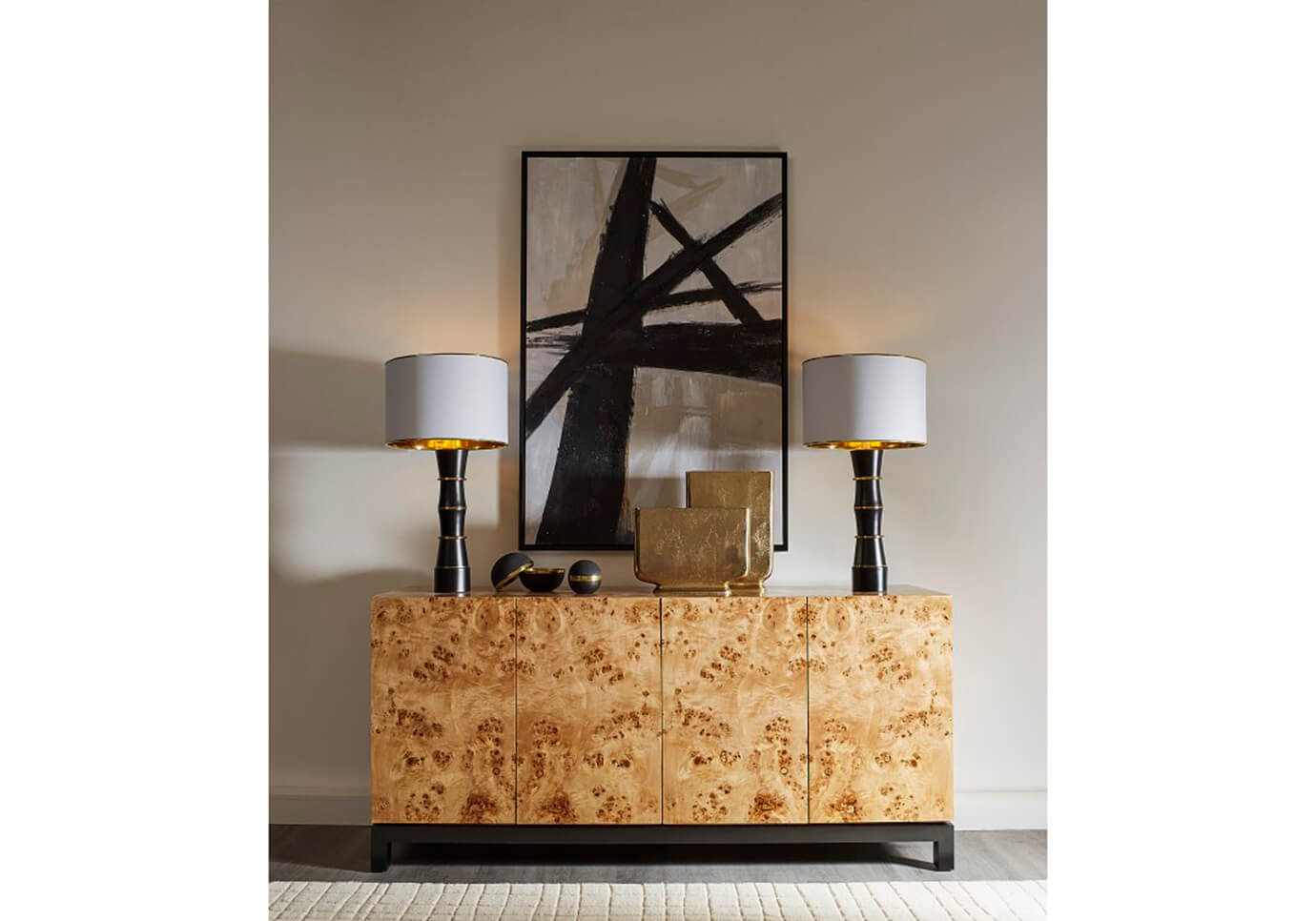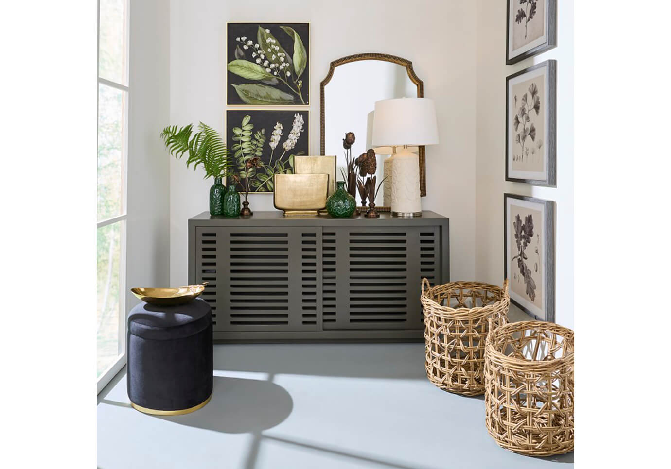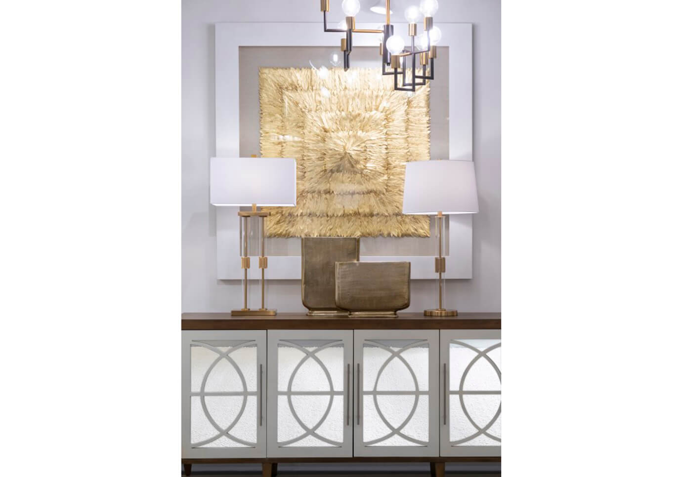 Florero alto y estrecho de aluminio con un acabado de latón texturizado. La forma se curva suavemente desde la base hacia una amplia boca rectangular. Este jarrón metálico es perfecto en una habitación de estilo tradicional actualizada.