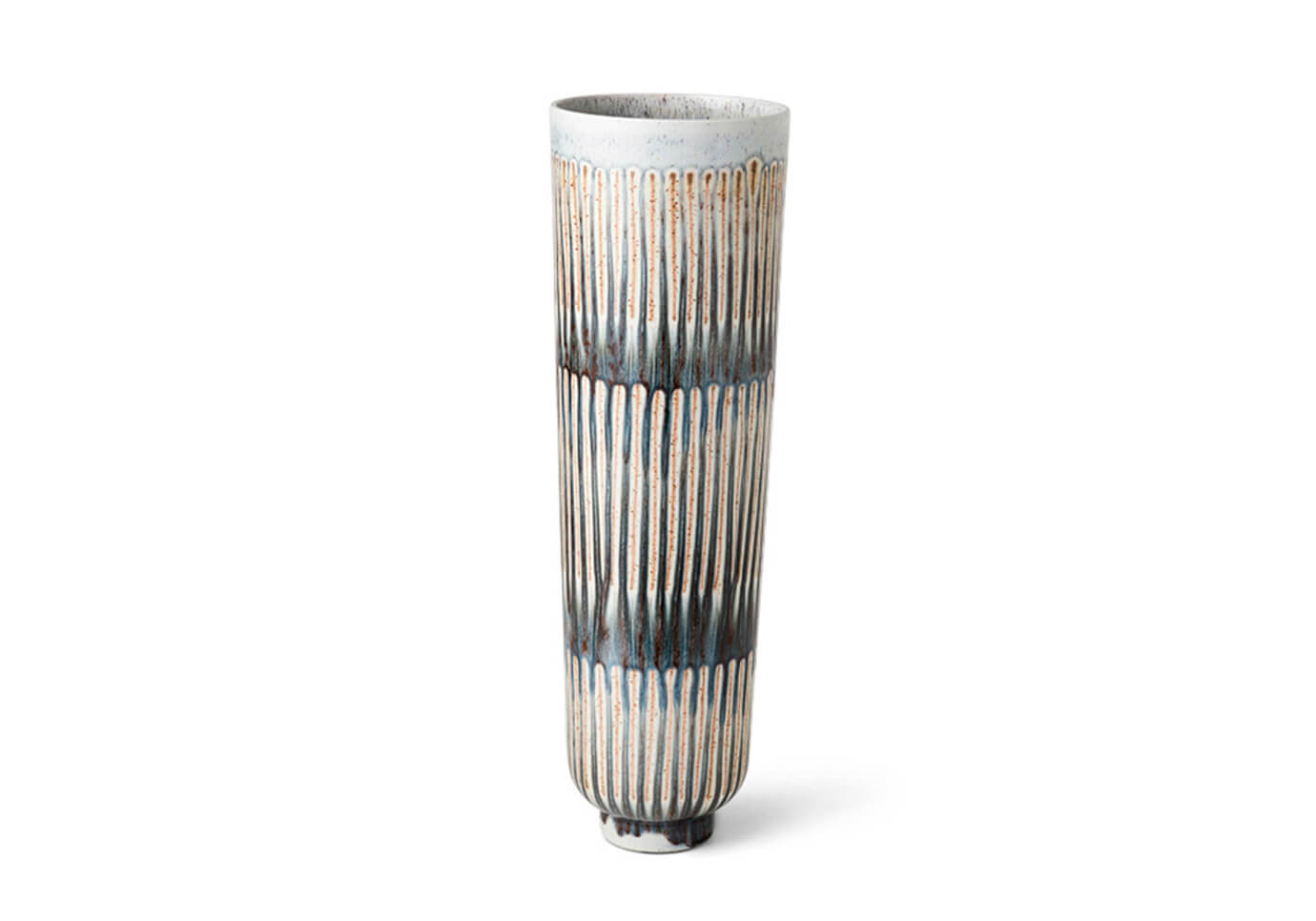 Las formas elegantes están decoradas a mano expresando un aspecto que recuerda a la cerámica de estudio de los años 60. El patrón único está dibujado a mano usando una combinación de crayón y esmalte por artesanos europeos. Cada pieza es única y tendrá variaciones en el patrón y el tono, lo que garantiza que la tuya sea única.