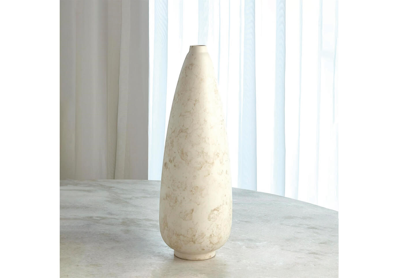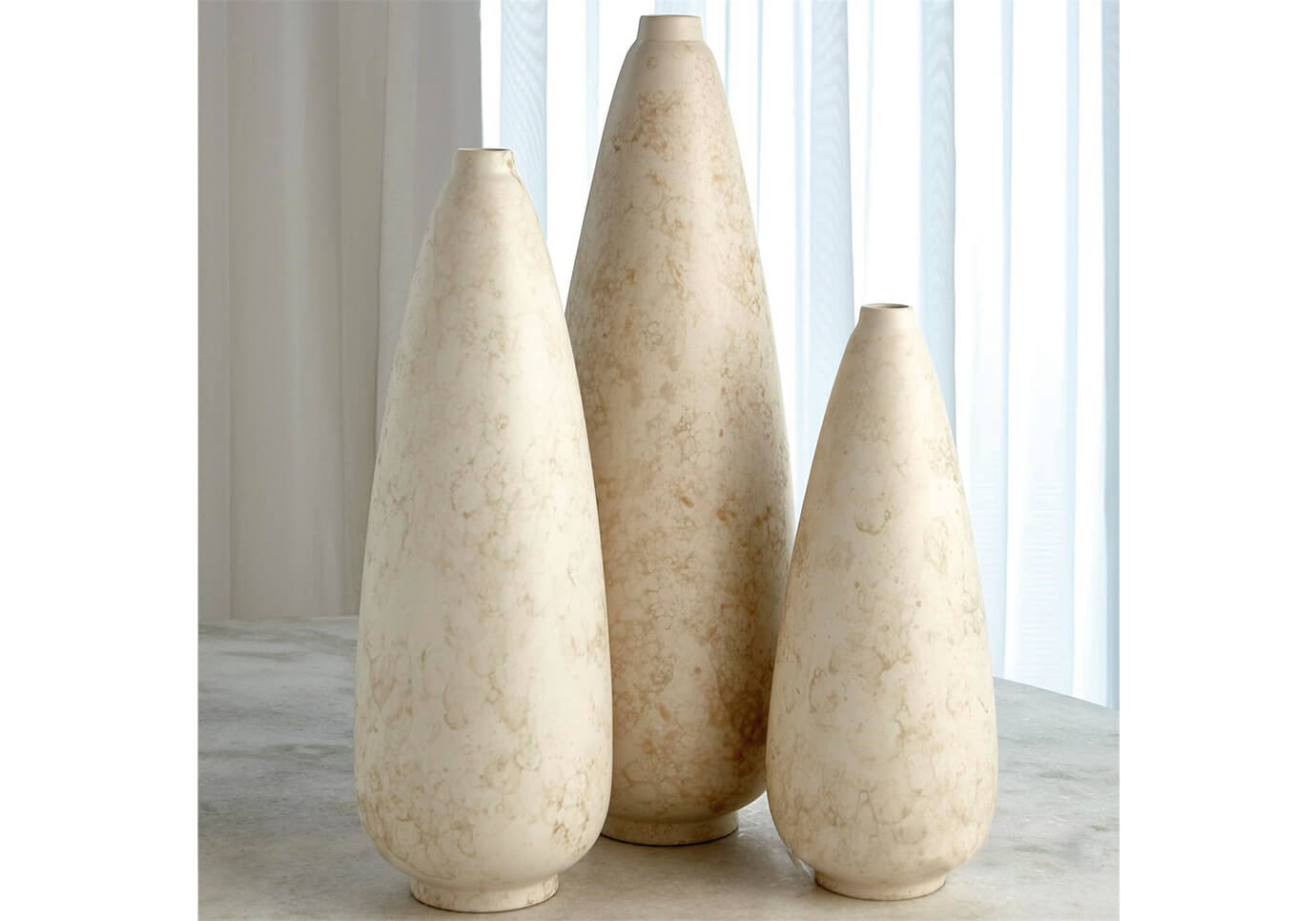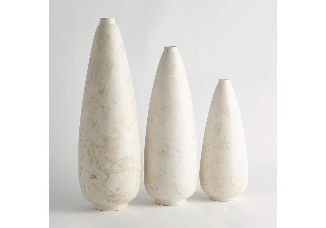 Una forma cónica moderna y un esmalte texturizado similar a la piedra hacen que esta colección de jarrones sea sutilmente elegante. Nos encanta agrupar los tres tamaños de esta colección para lograr el máximo impacto artístico