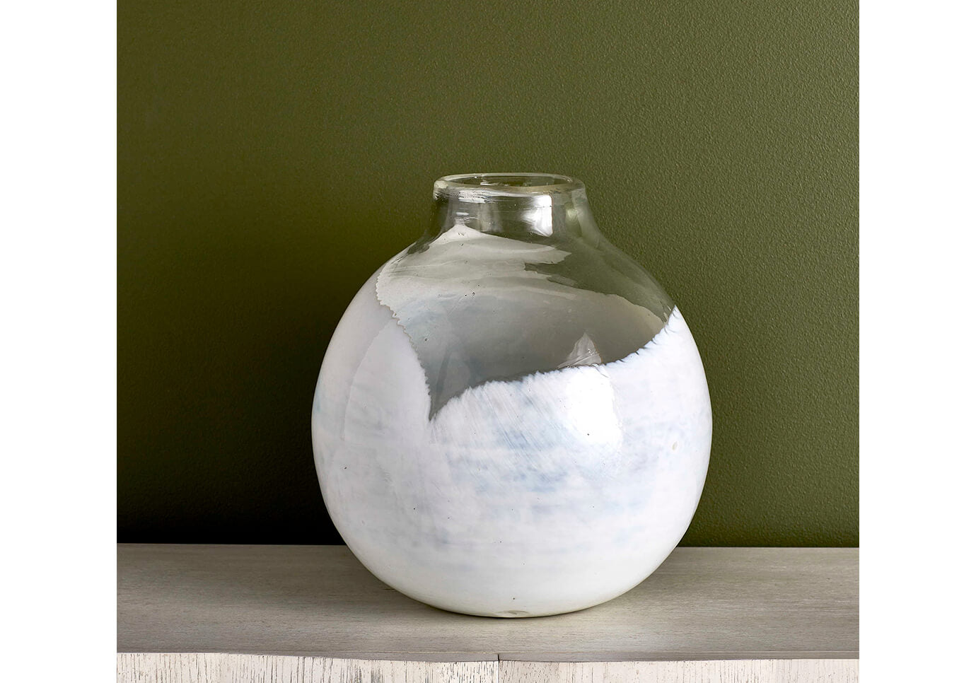 Florero de Vidrio Soplado Esfera Transparente con Blanco