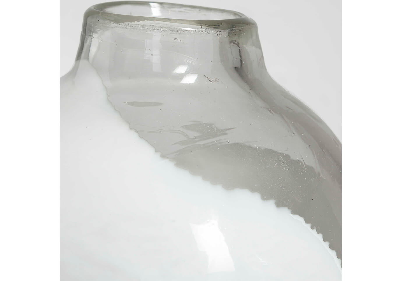 Florero hecho de vidrio transparente y blanco soplado a mano. Hecho por artesanos, con una boca de corte suave, cada jarrón tiene características únicas.