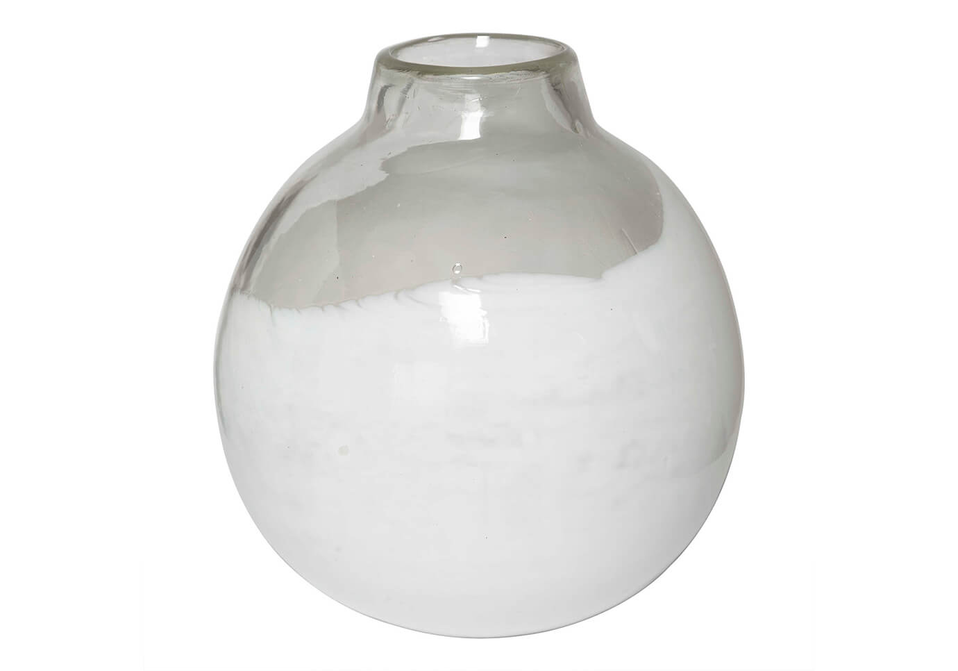 Florero de Vidrio Soplado Esfera Transparente con Blanco Mediano