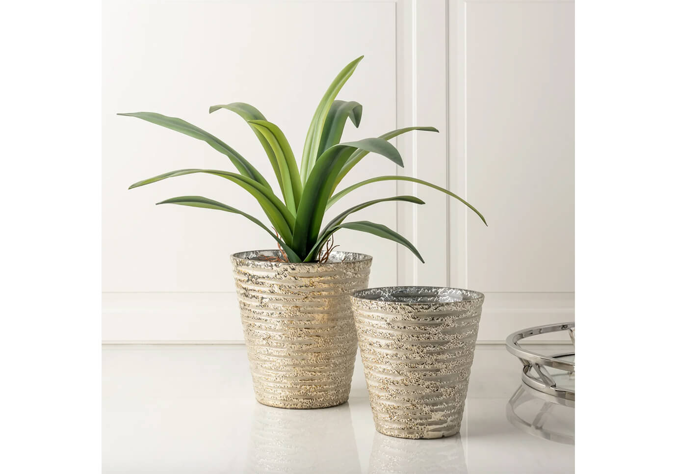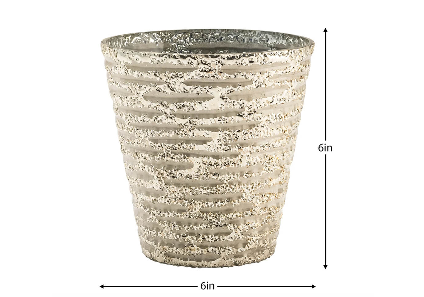 Esta pieza de vidrio se verá impresionante en cualquier hogar, ya sea como jarrón, macetero o candelabro. El diseño lineal cincelado se destaca con un acabado dorado de lujo para que realmente se destaque en cualquier hogar.
