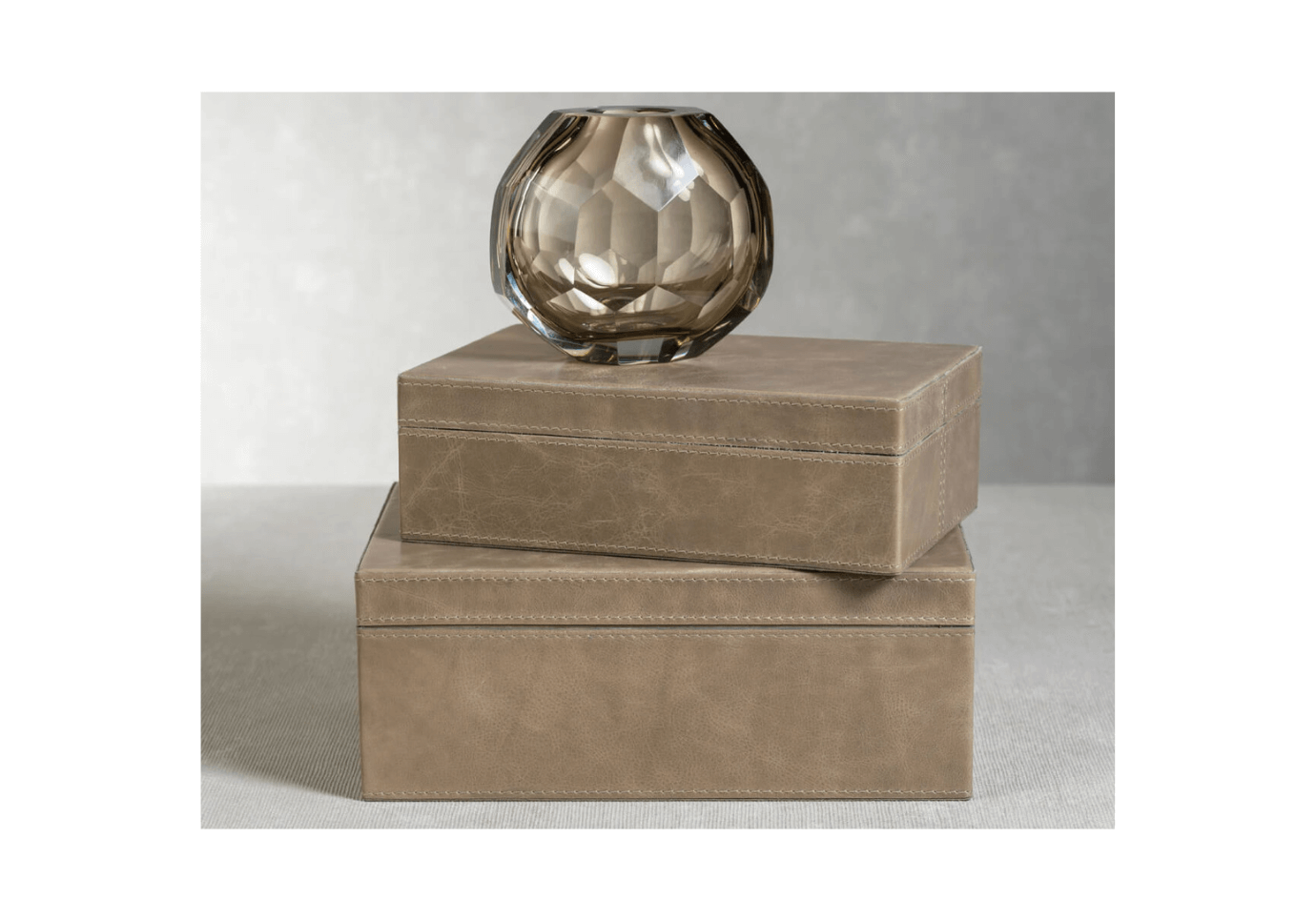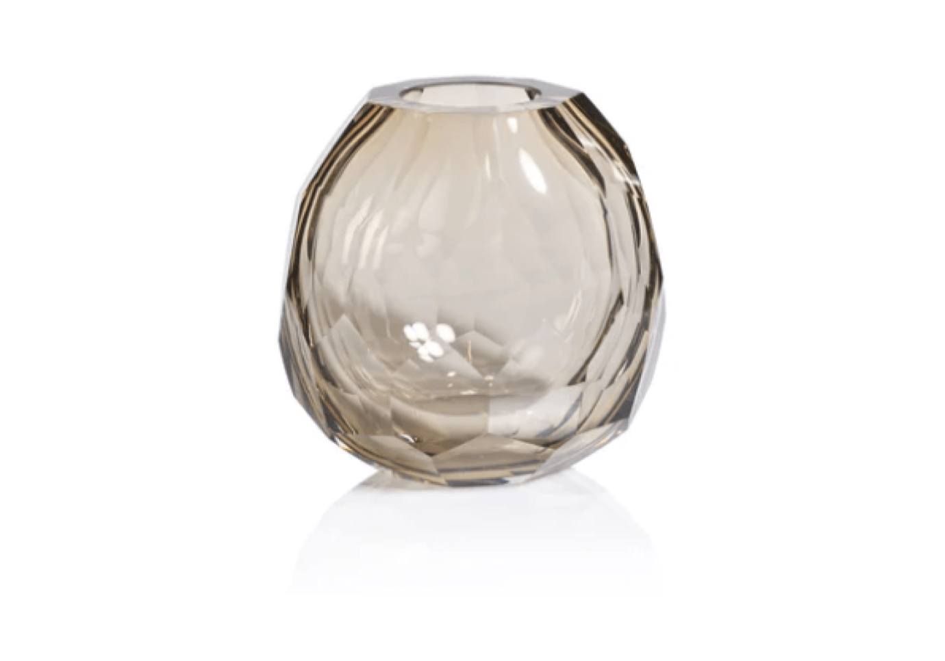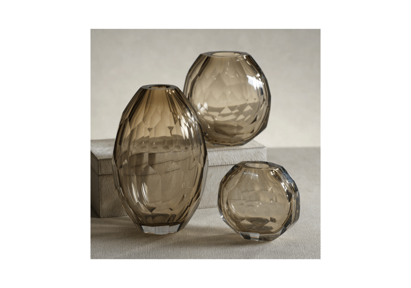 Eleva la decoración de tu hogar con este set de dos floreros facetados en cristal grueso color café. Su diseño geométrico y contemporáneo añade profundidad visual y sofisticación a cualquier espacio, mientras que el acabado facetado refleja la luz con elegancia.