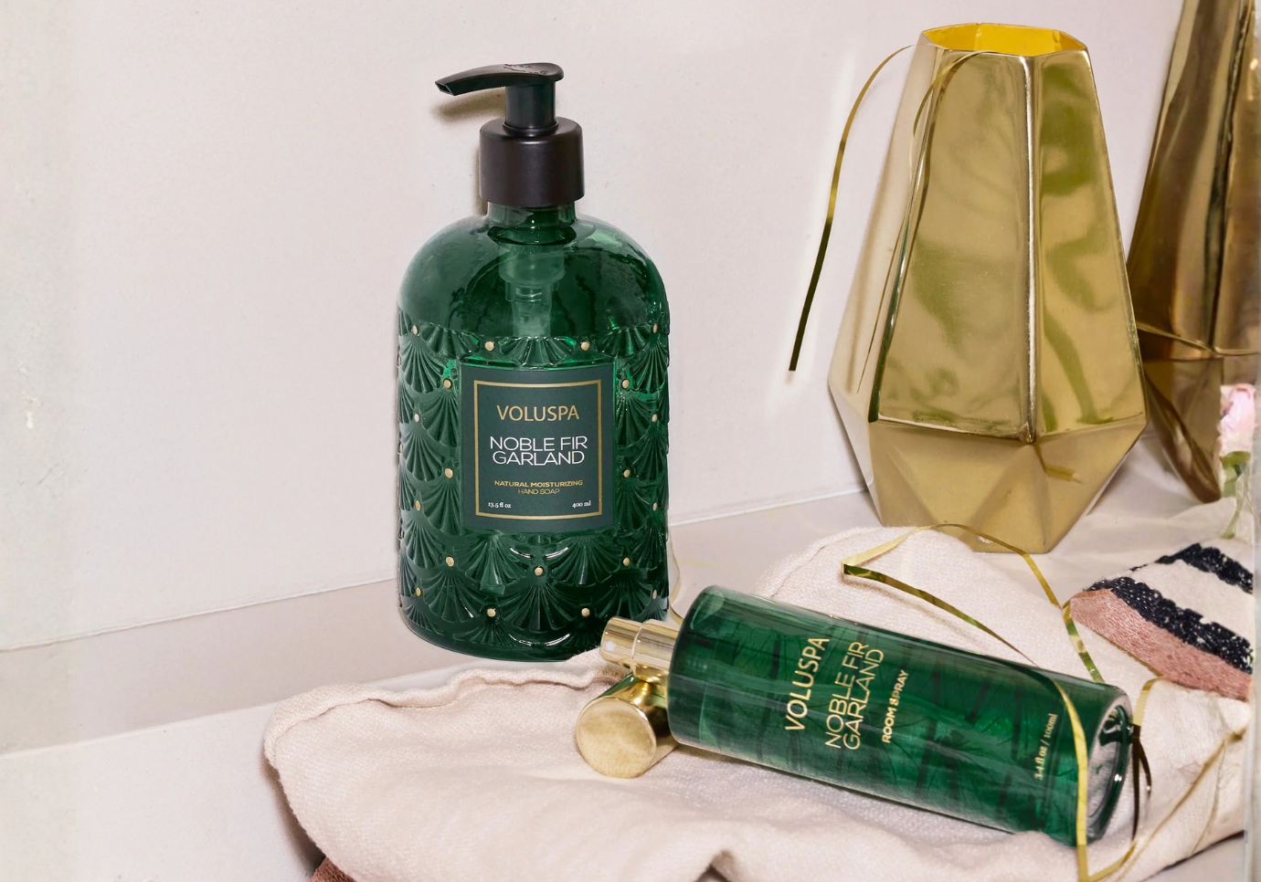 Jabón de Manos con envase con textura. Aroma con notas de agujas de abeto noble, madera de cedro, ámbar radiante y almizcle de cachemira.