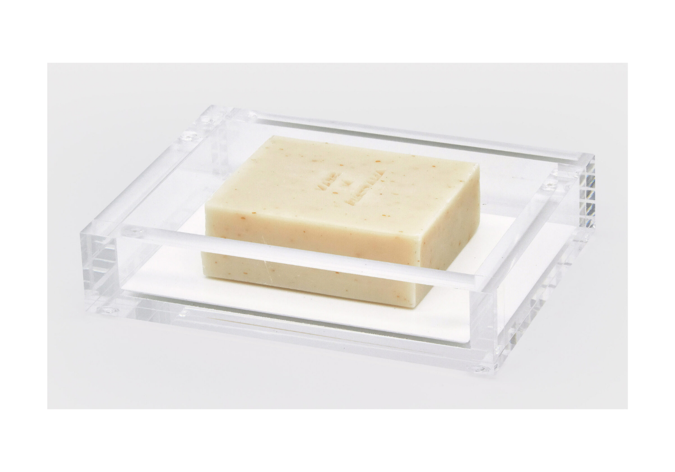 Jabonera Sólida de Acrílico Transparente con Fondo Blanco