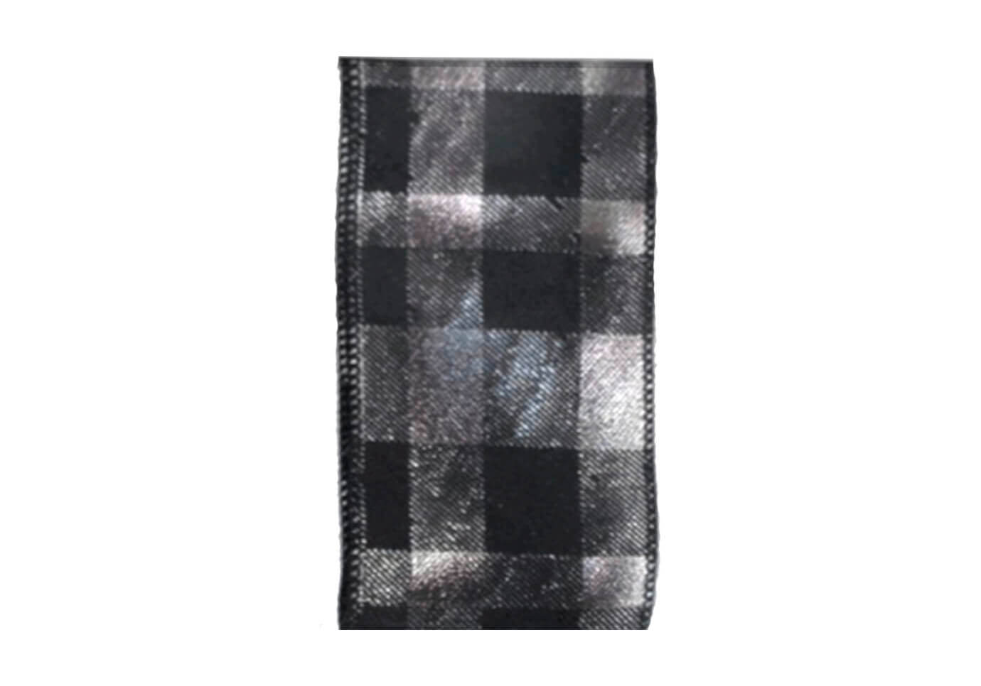 Listón Cuadros Metálico Plateado y Negro 6 cm