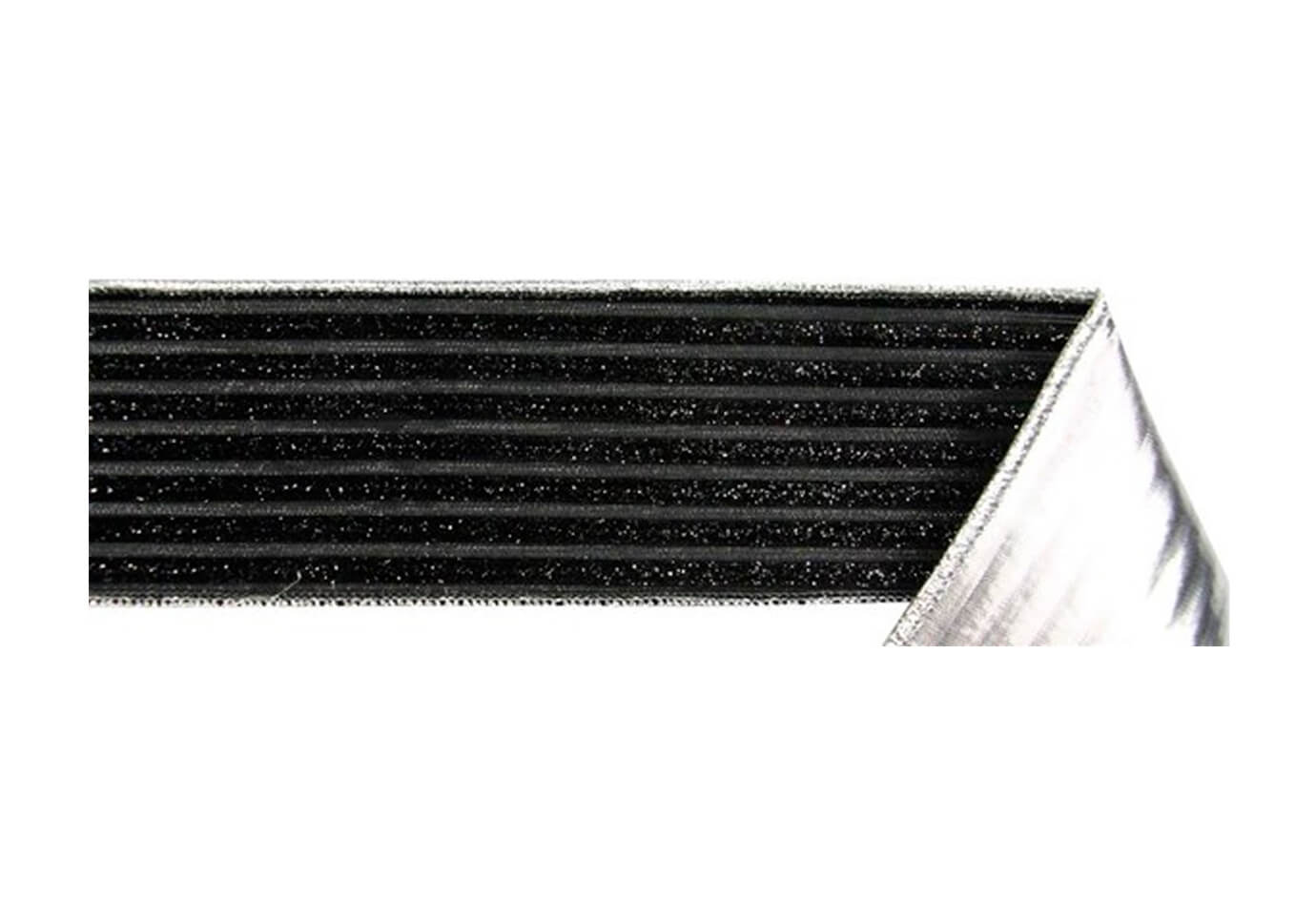 Listón de dos vistas, frente color negro y borde plateado y reveso plateado brillante