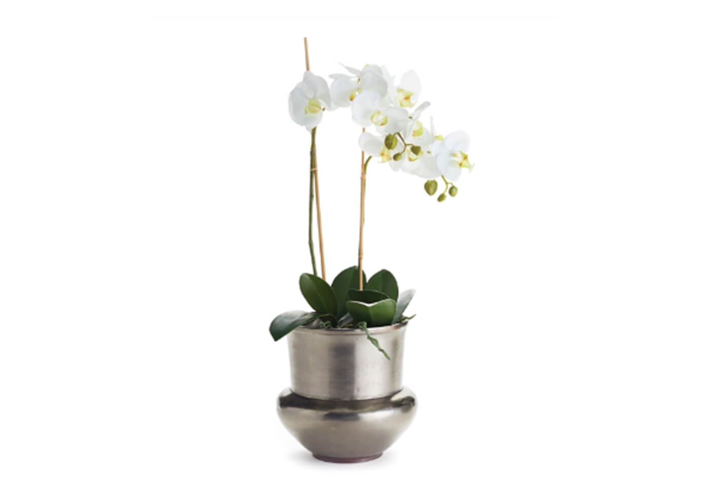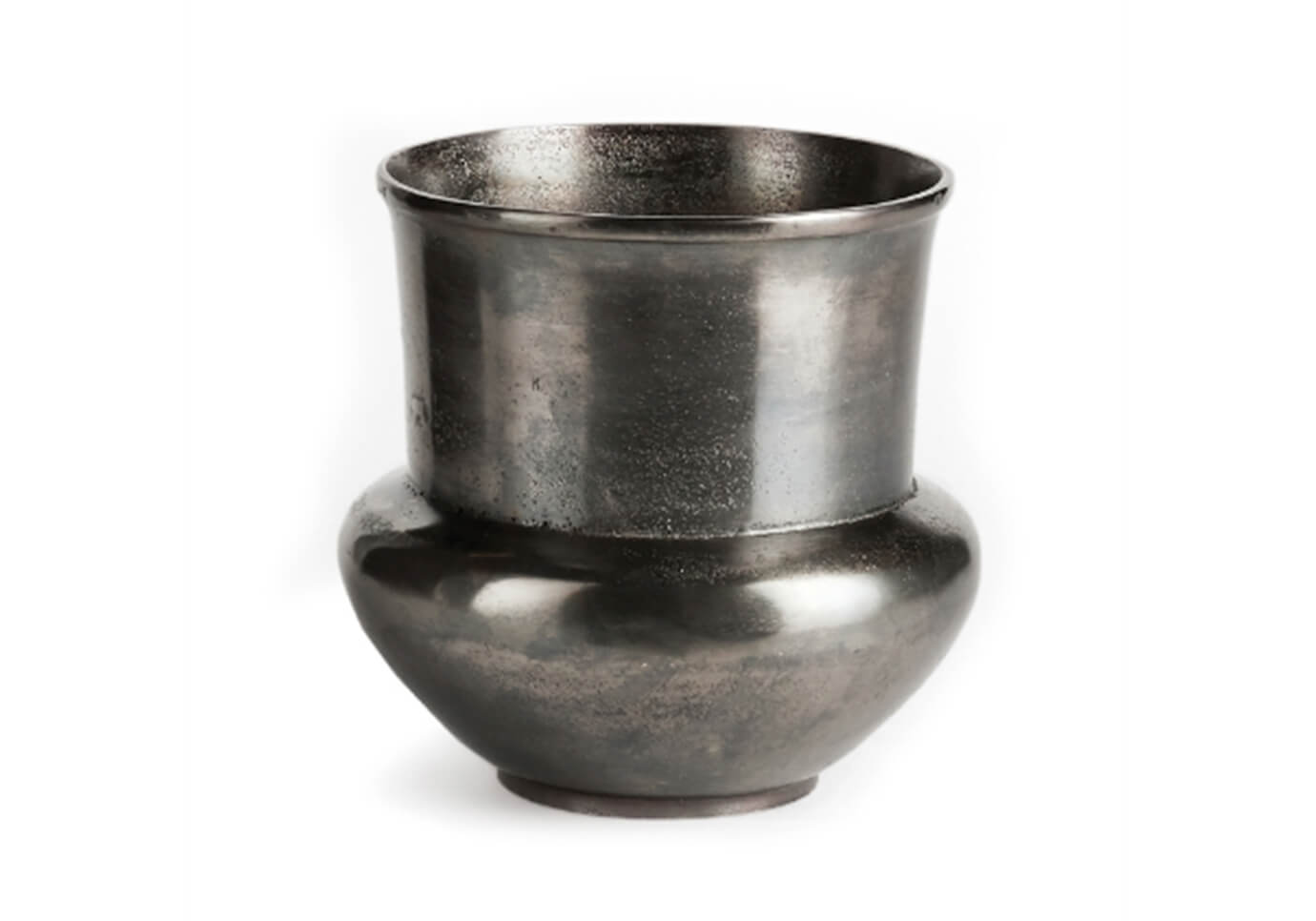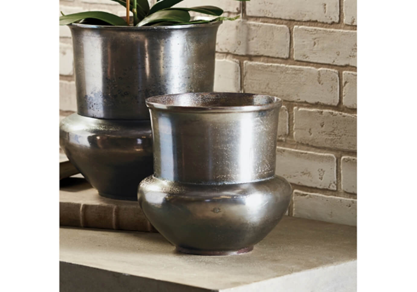 Maceta Metálica Plateada Obscura Cuello Ancho