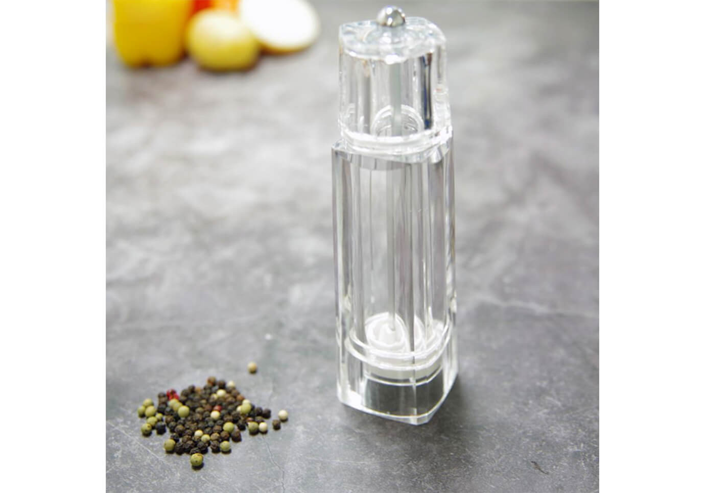 Moledor de sal o pimienta de acrílico transparente diseño cuadrado.