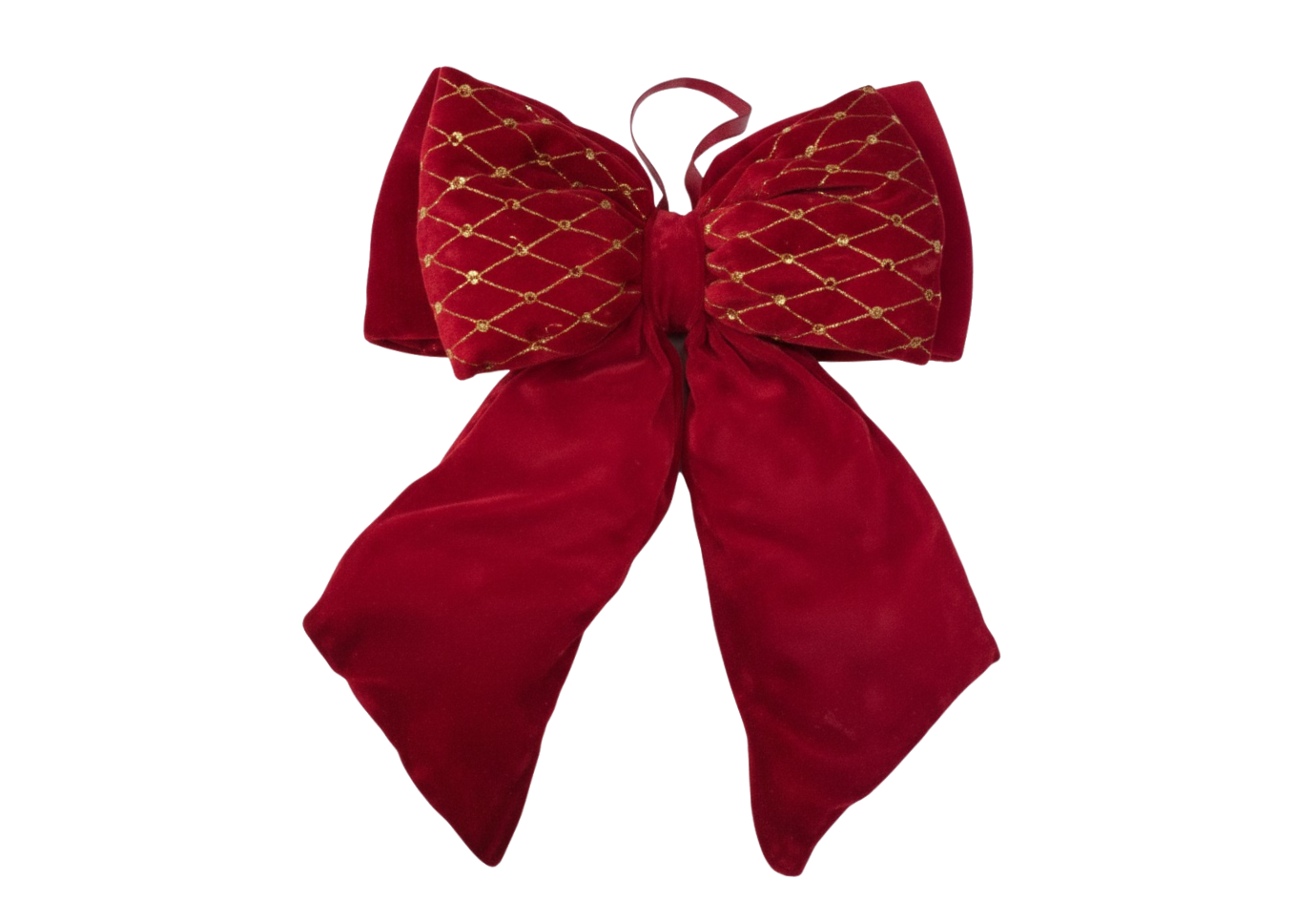 MOÑO BOMBACHO TERCIOPELO ROJO CON LENTEJUELA DORADA 30 CM