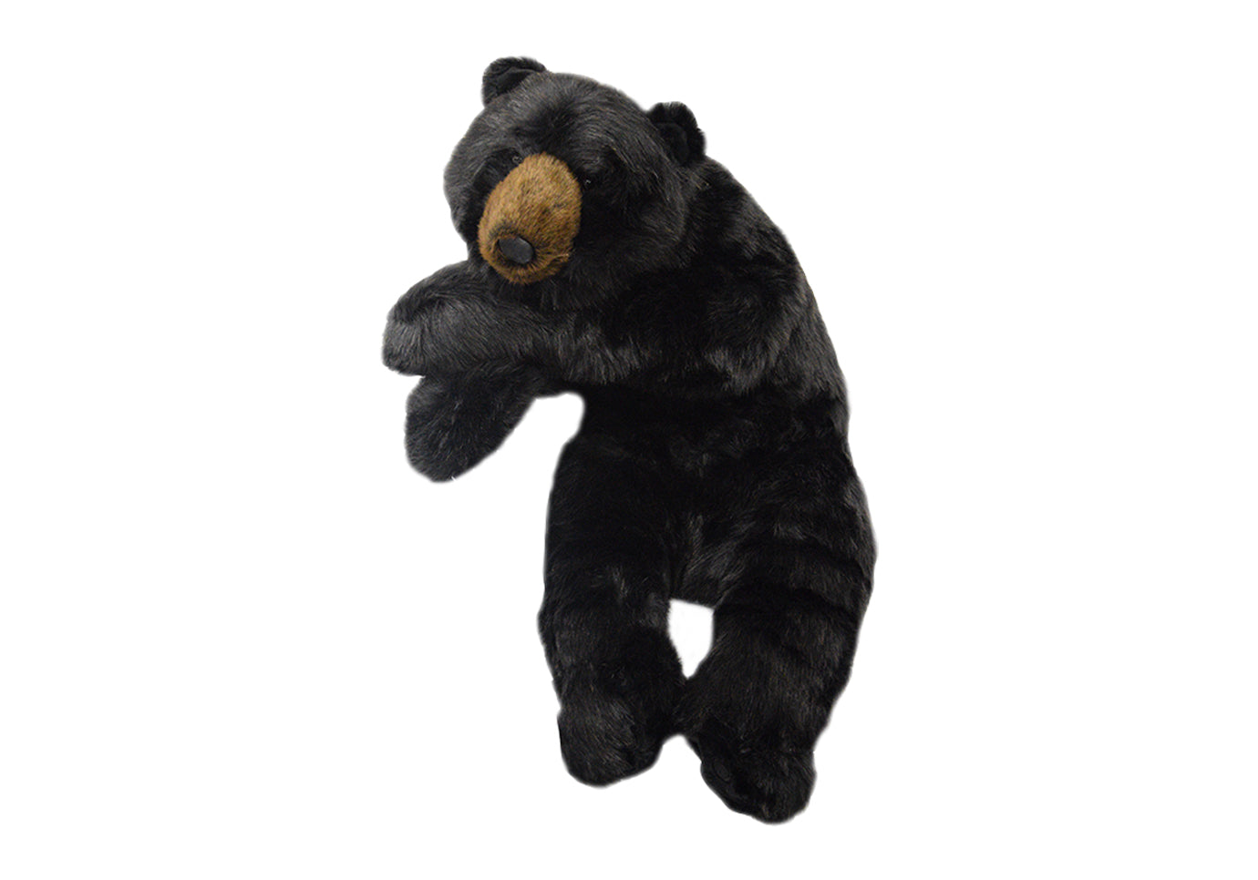 Oso de peluche negro pelo sintético suave, cuerpo relleno sintético acojinado.
