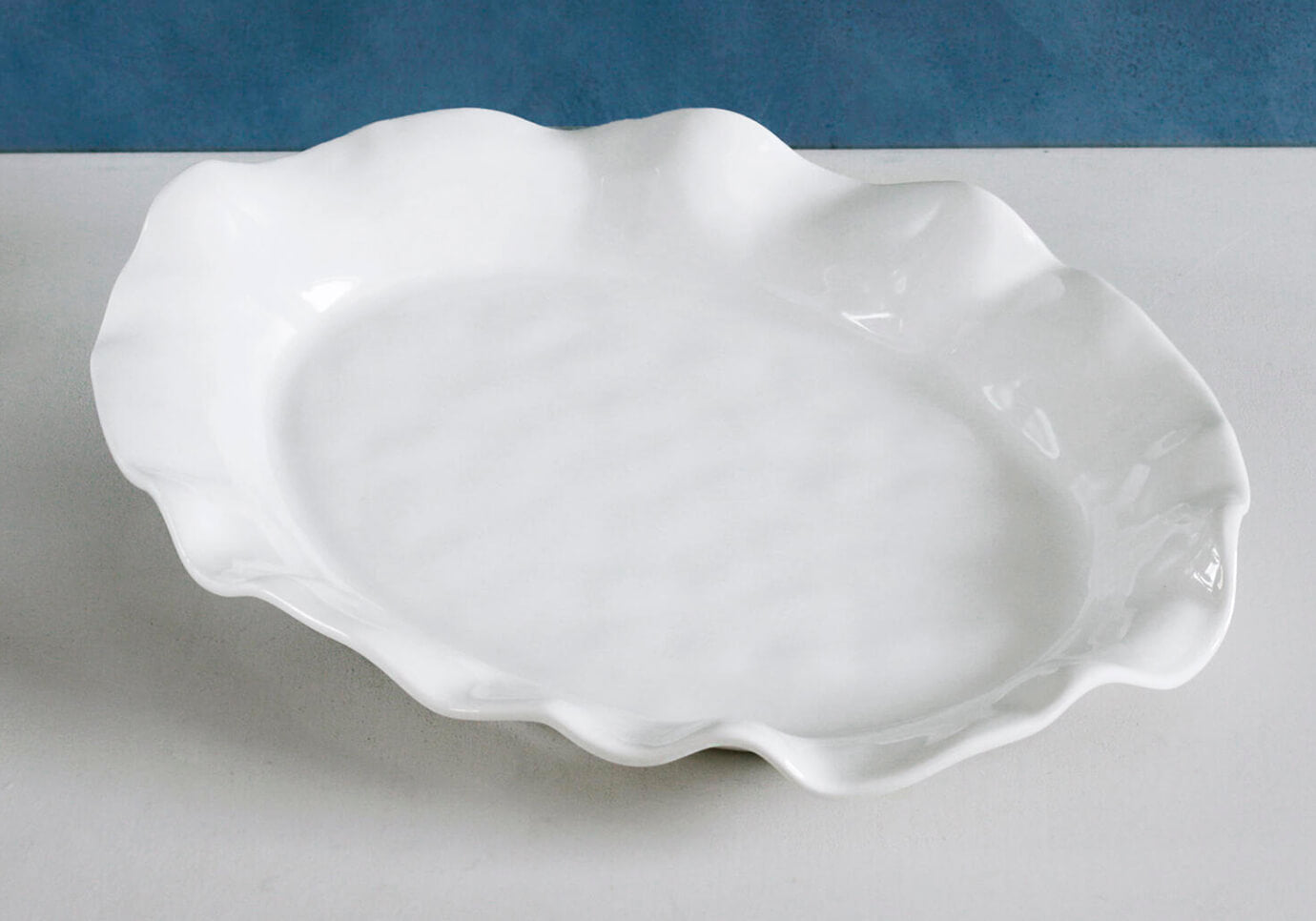 Plato Ovalado Melamina Blanco Borde Ondulado