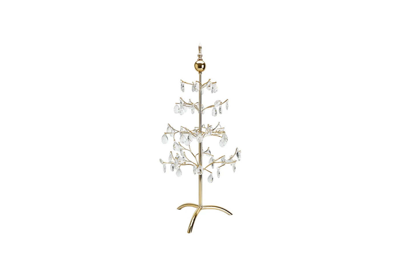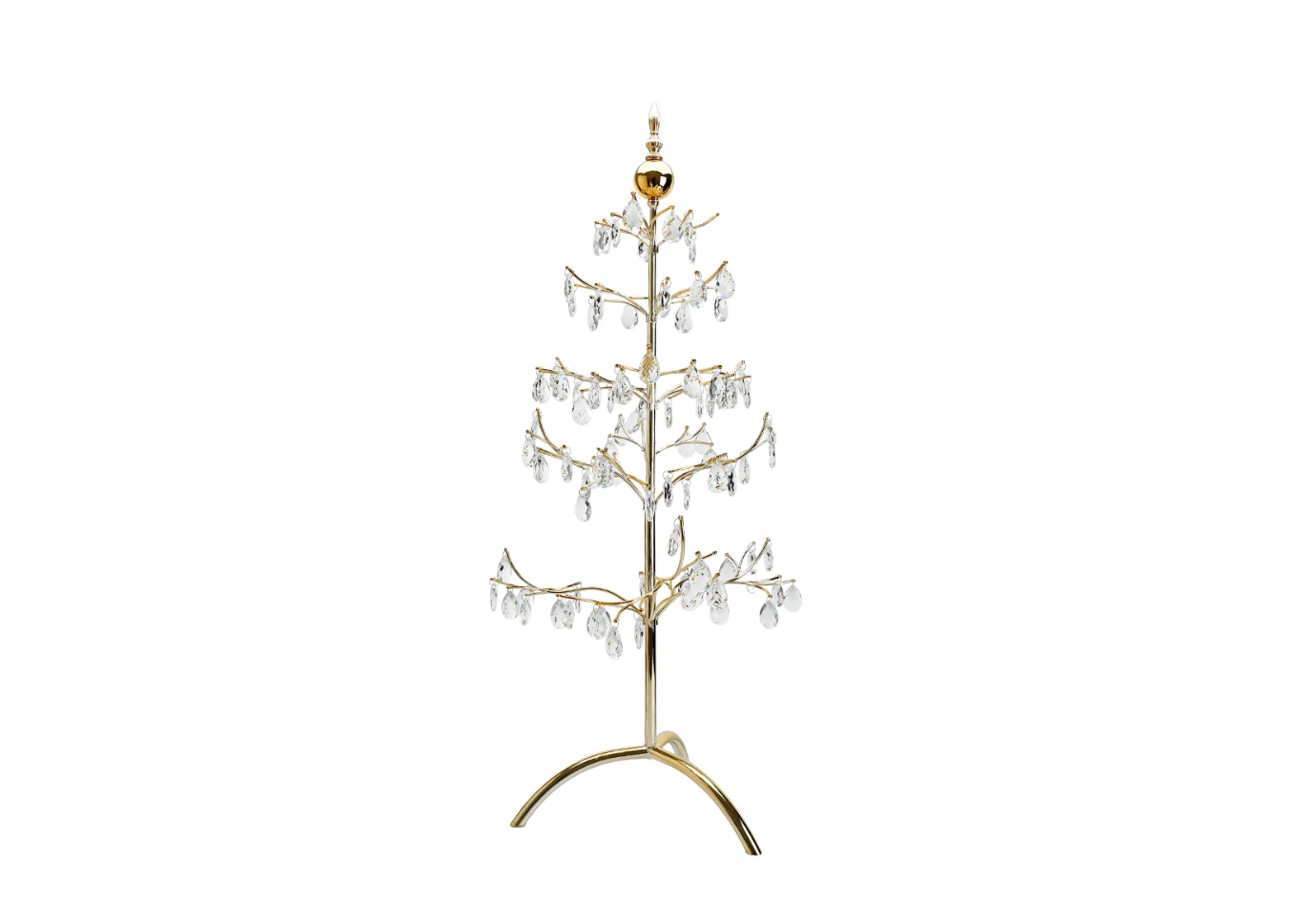 Pino de metal ramas doradas y piedras gotas transparentes.