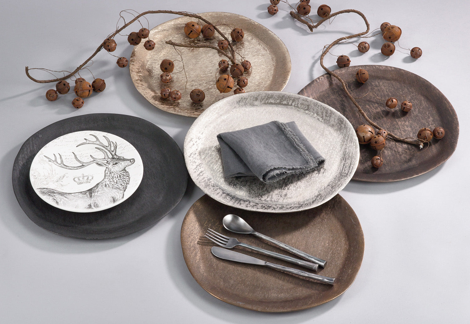 Plato Base Redondo de Metal Cepillado Dorado 33 cm