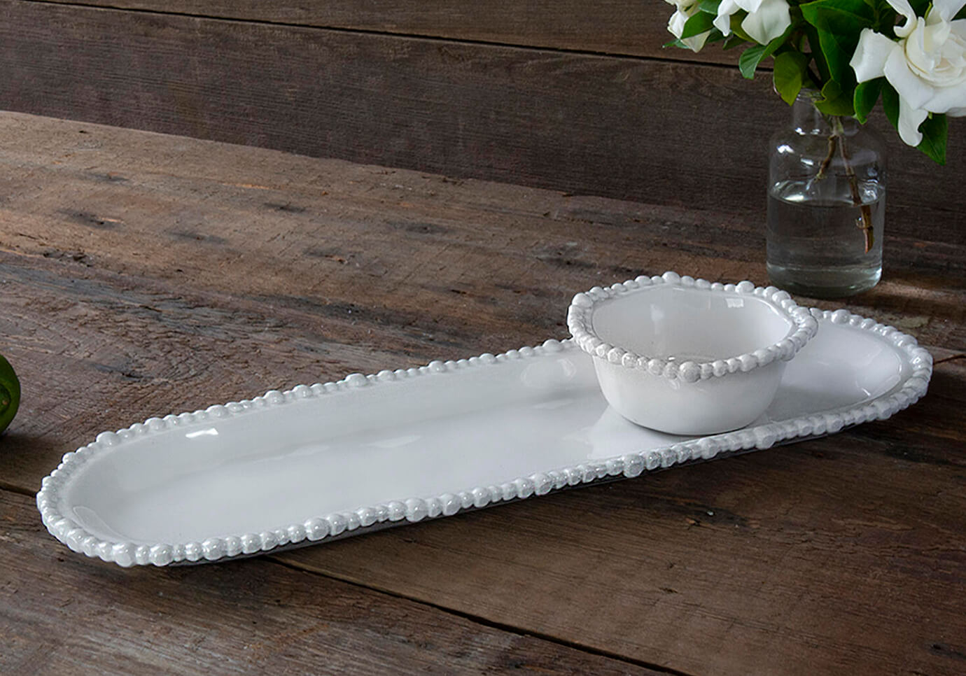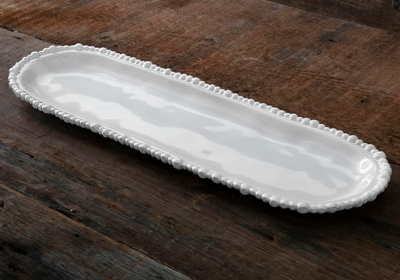 Plato Ovalado Melamina Blanco Borde Perlado - Mediano