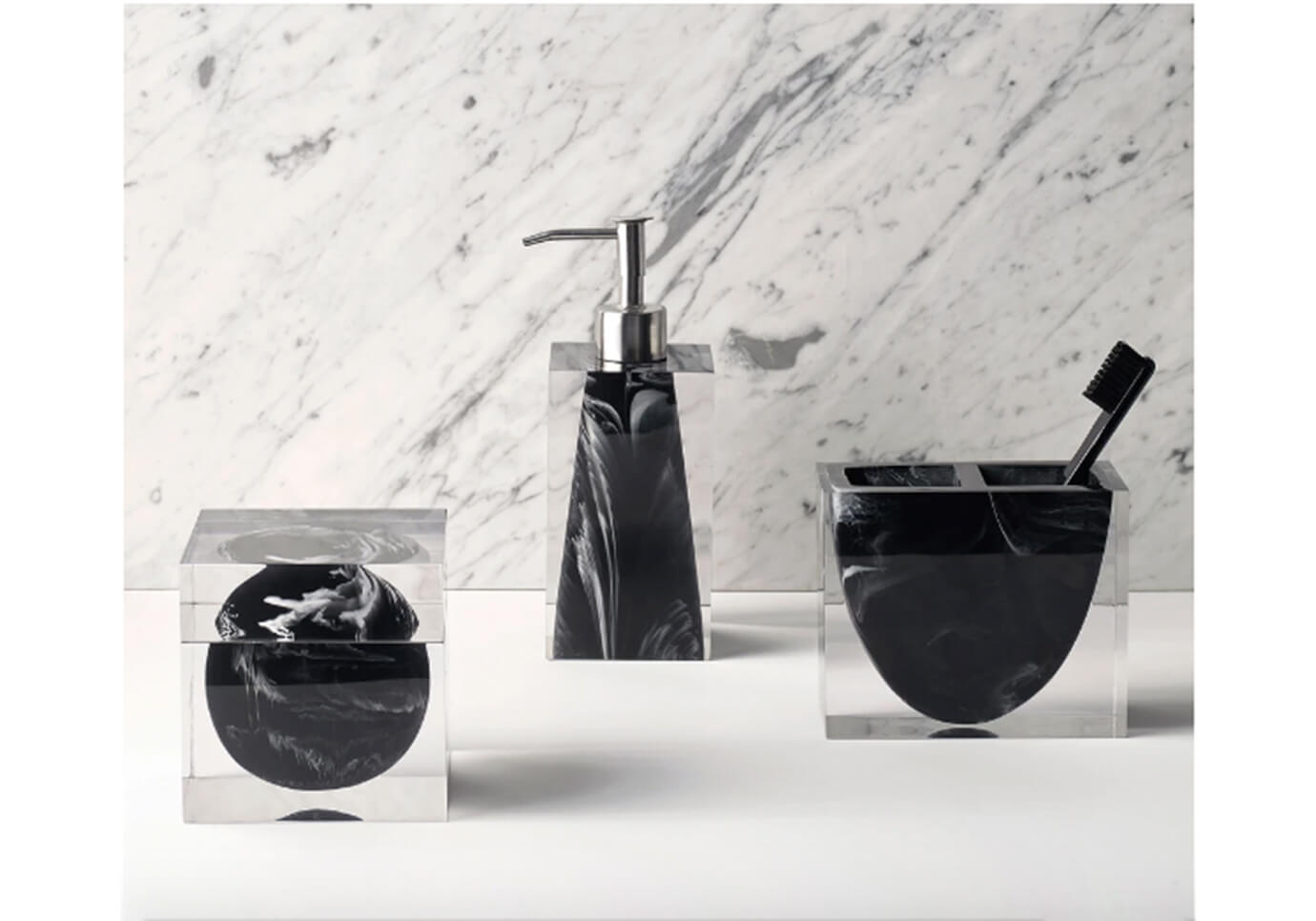 Adorne su spa con nuestros accesorios de baño marmoleado. Elaborados con resina inyectada con tinta que flota a la perfección en una cubierta acrílica translúcida, estos accesorios completan un baño que irradia textura y un atractivo moderno.