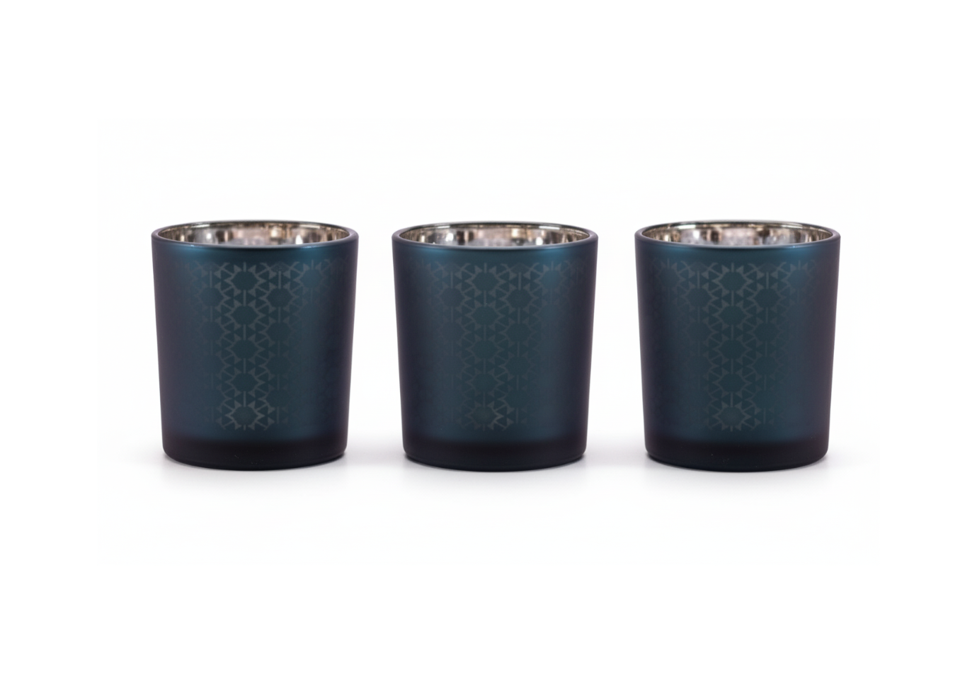 PORTAVELA DE VIDRIO AZUL INTERIOR DORADO CH