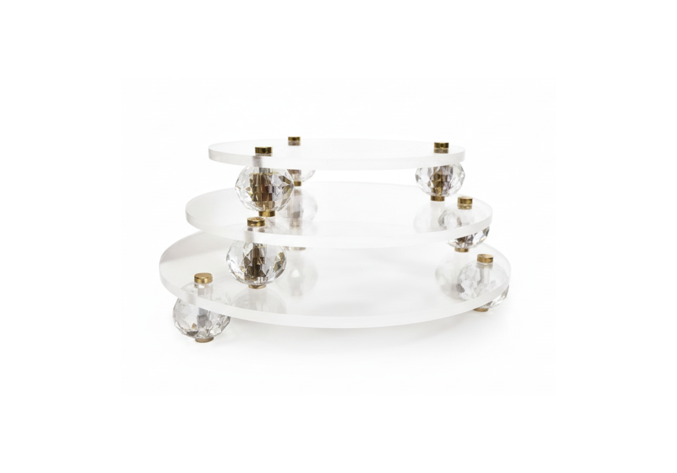 Quesera de Acrílico Redonda con 3 Patitas de Cristal Facetado y Detalle Dorado