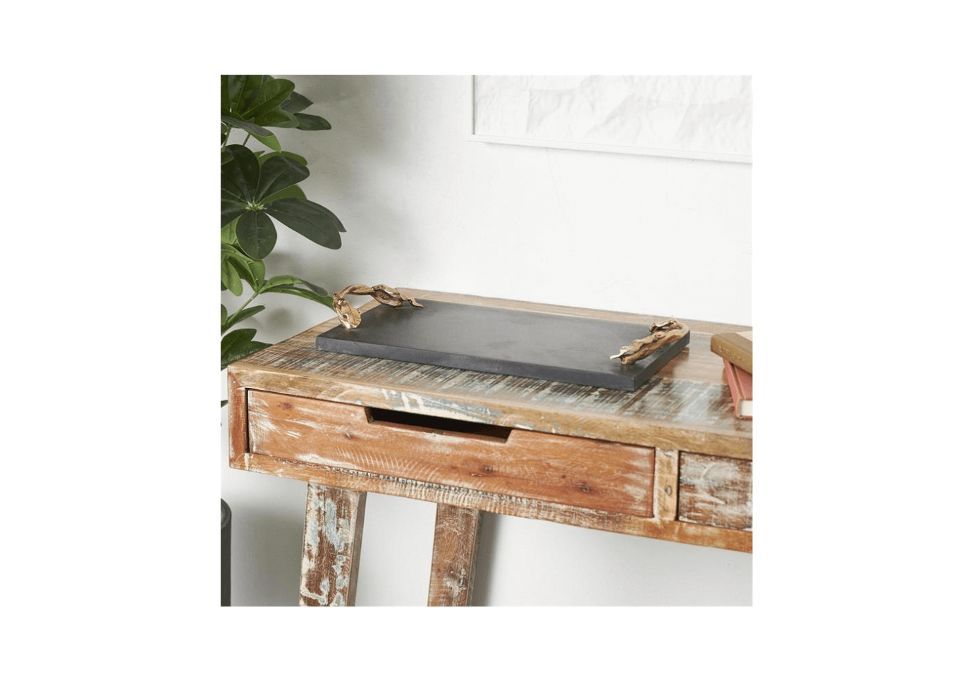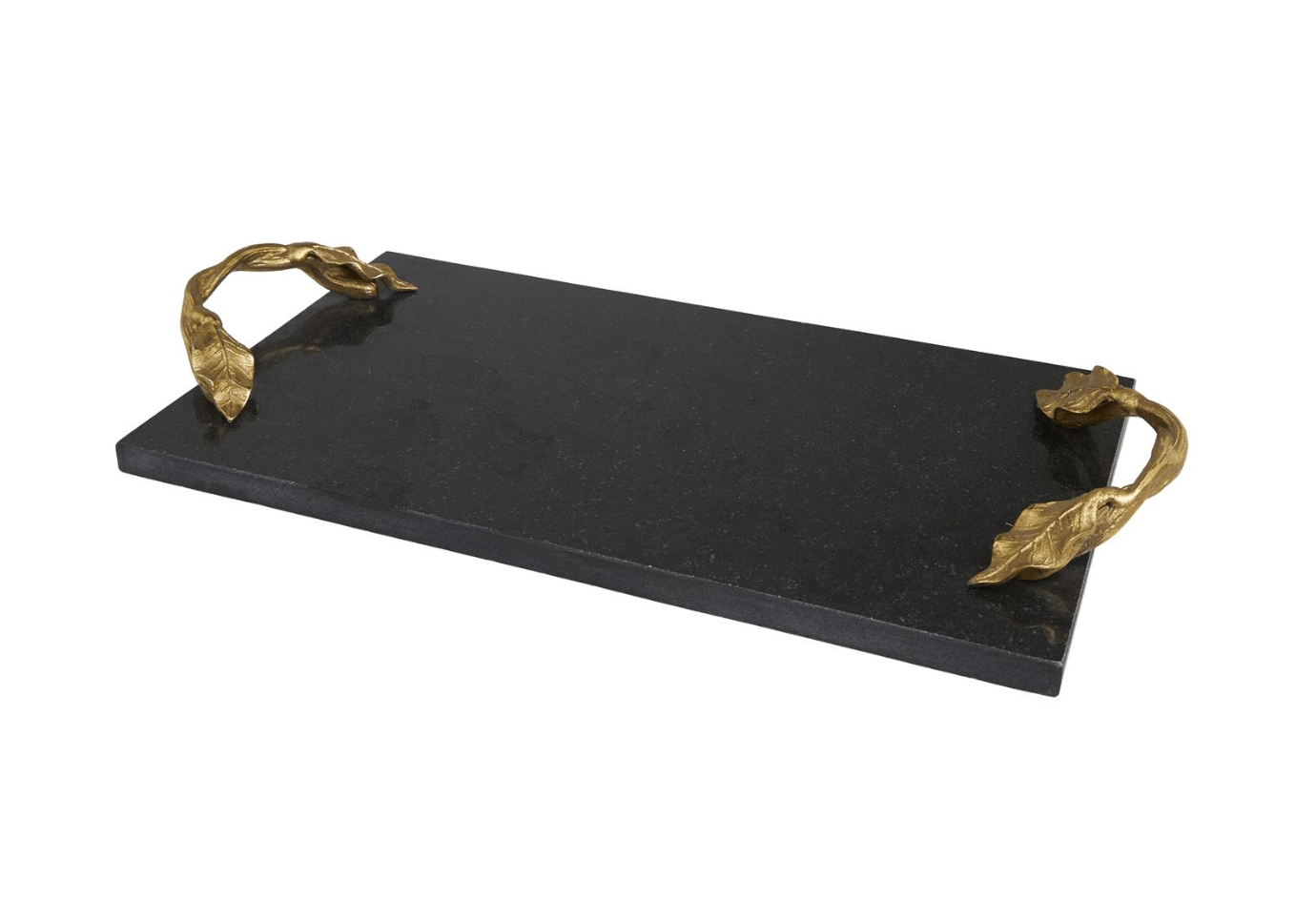 Quesera de Granito Negro Rectangular con Asas Hojas de Metal Dorado