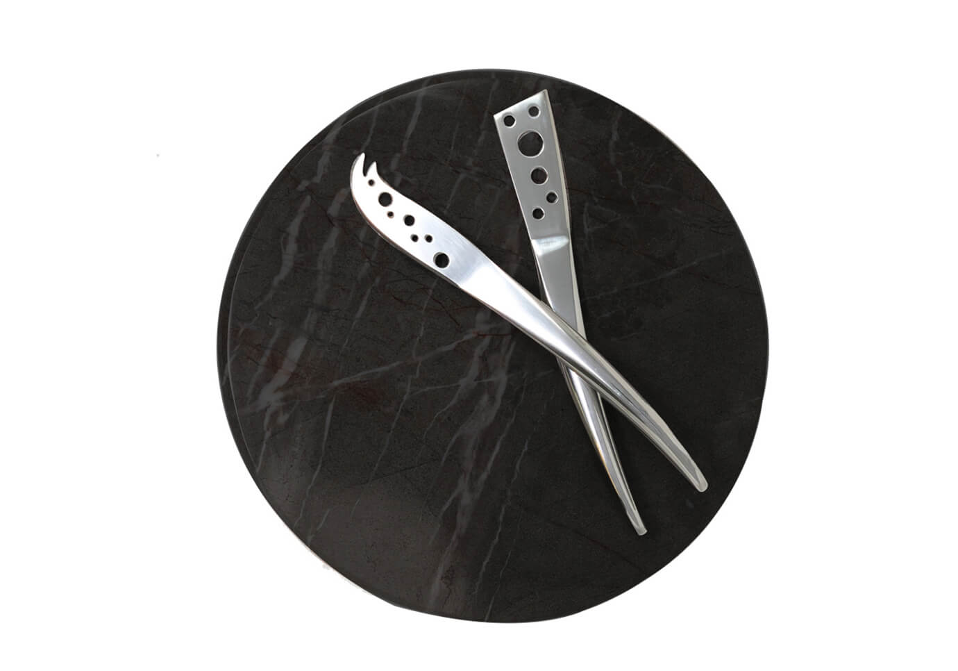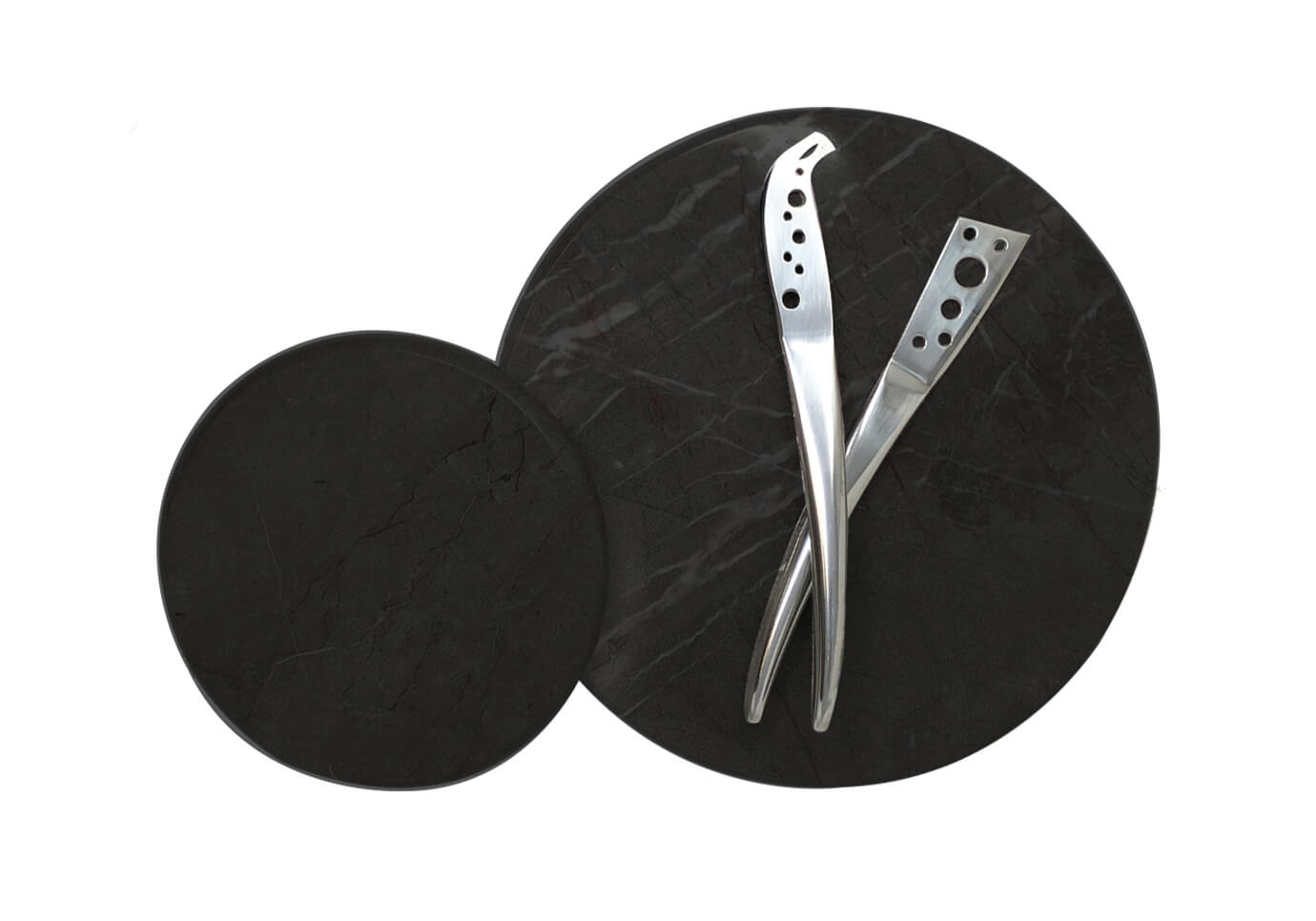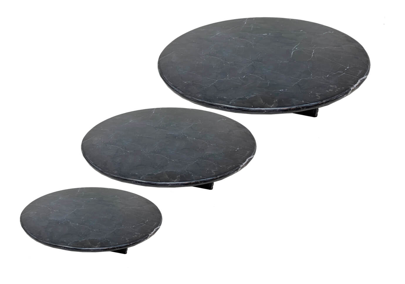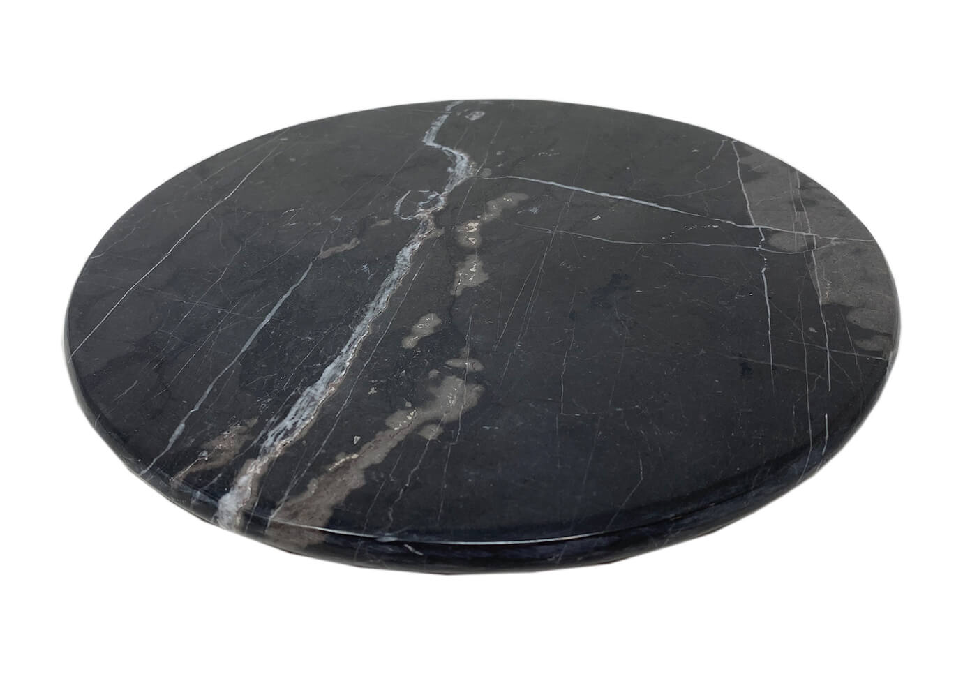 Quesera redonda de mármol negro brillante de dos apoyos.