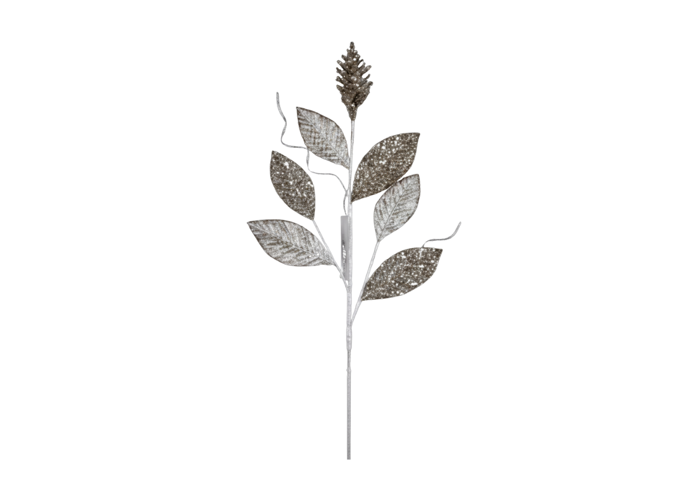 RAMA HOJA DE MAGNOLIA CHAMPAGNE CON HOJAS METALICAS LISAS Y HOJAS ESCARCHADA CON LENTEJUELA 71 CM