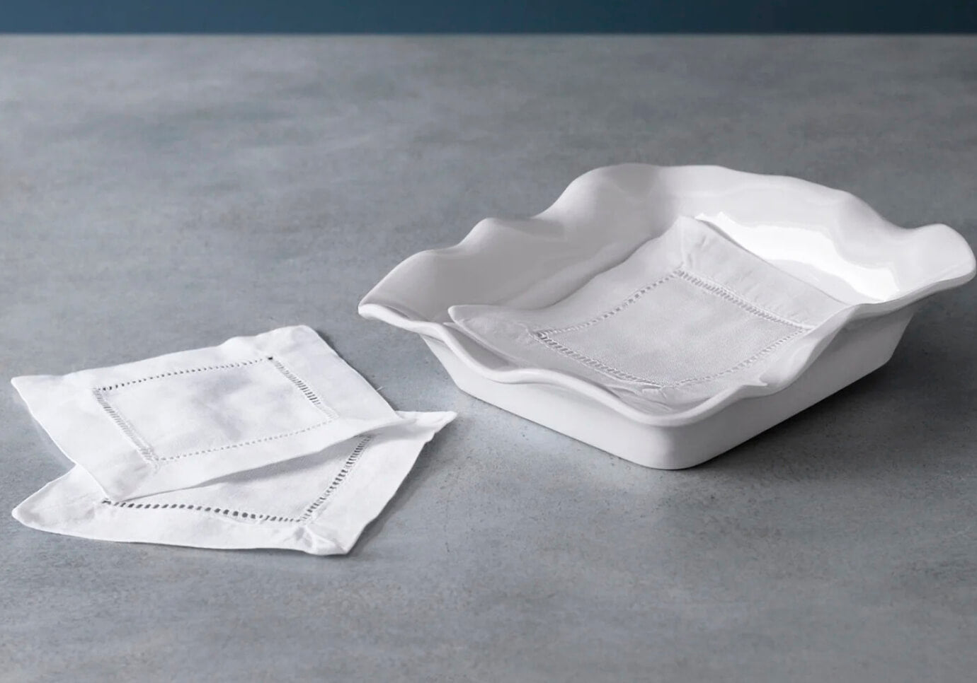 Servilletero Cuadrado Melamina Blanco Borde Ondulado
