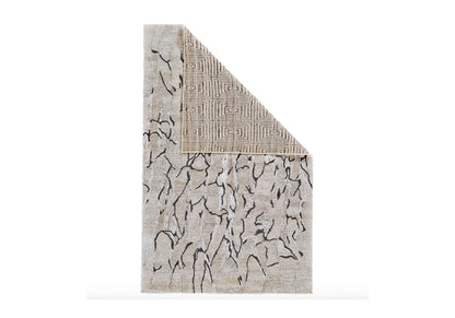 Tapete de viscosa anudada a mano con una alfombra de jacquard en la parte trasera, diseños completamente diferentes y bellamente modernos en cada lado en colores complementarios, estas piezas son versátiles, duraderas y ofrecen la capacidad de cambiar la apariencia de una habitación con solo voltear la alfombra.