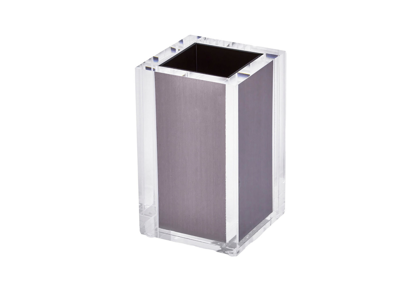 Este sofisticado vaso cuadrado de acrílico está diseñado para combinar funcionalidad y estilo, es un accesorio ideal para baños, oficinas o cualquier espacio moderno.